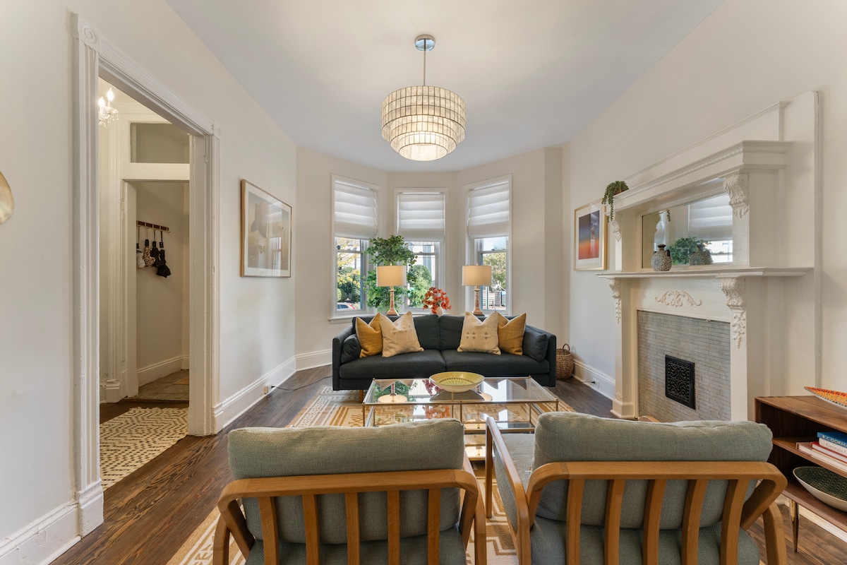 ¡Acabo de volver a anunciarlo! Apartamento privado moderno, limpio, espacioso y cómodo en una casa adosada victoriana bellamente restaurada. Ubicado en el centro del moderno y práctico barrio de Shaw. Luminoso y alegre. Cocina bien equipada, sala de estar con TV y Roku, área de oficina separada, dormitorio, lavadora/secadora, wifi de alta velocidad y mucho más. A pocos pasos del metro (1 manzana), centro de convenciones (3 manzanas), tienda de comestibles (1,5 manzanas) y restaurantes, entretenimiento, bares y el centro de la ciudad. Ubicado en una manzana tranquila y arbolada en el centro de la ciudad.