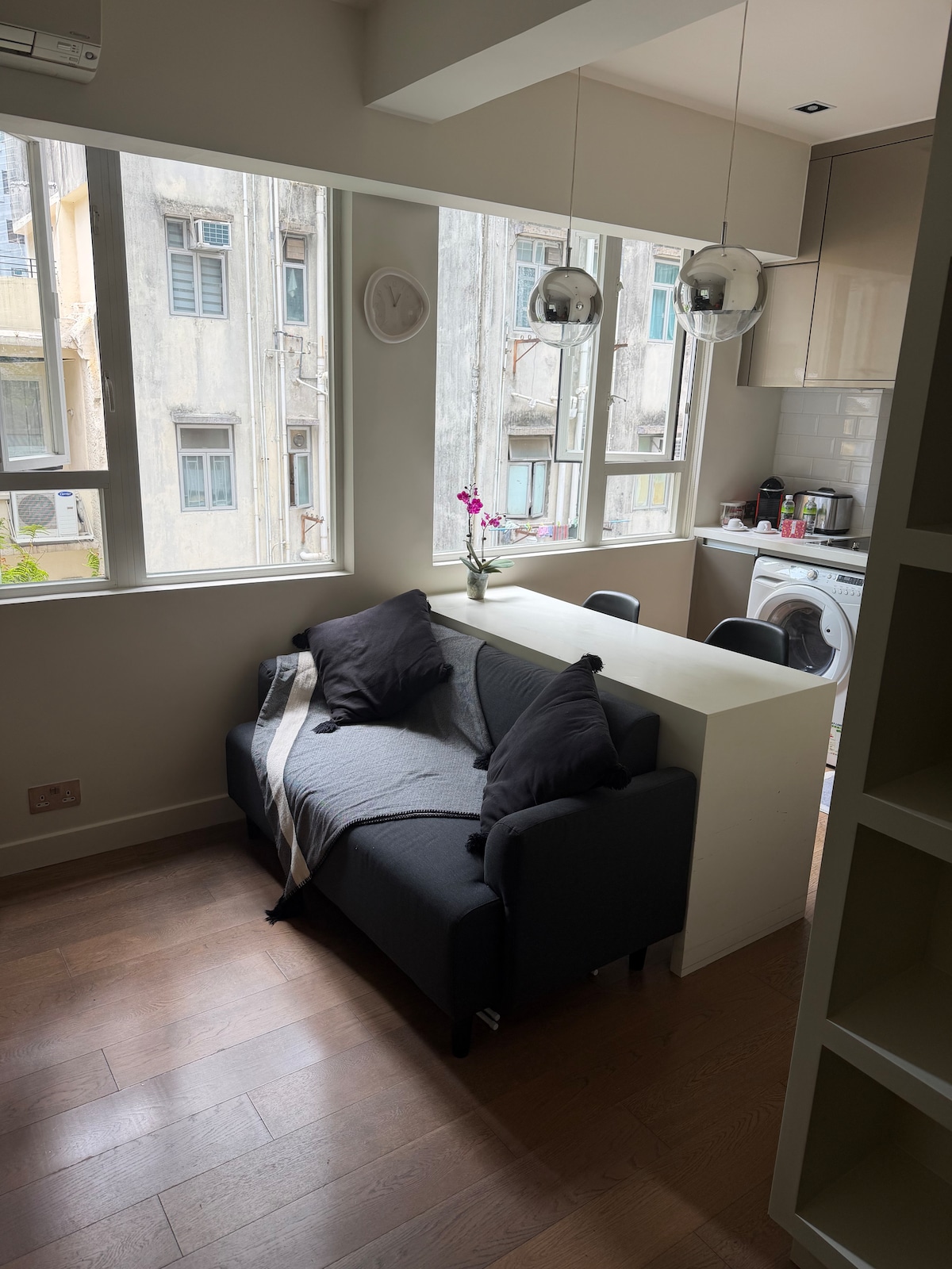 ¡Bienvenido a mi elegante y espacioso apartamento en el corazón de Wanchai! Esta joya de un dormitorio de 400 pies cuadrados está bañada por luz natural, creando un ambiente luminoso y vibrante. Ubicado a solo unos pasos de la estación de metro, el mercado tradicional y los bares, cafés y restaurantes de moda, es el punto de partida ideal para explorar la ciudad. Con un diseño minimalista elegante, servicios de cocina completos y capacidad para alojar hasta tres huéspedes, este apartamento ofrece estilo y comodidad.
