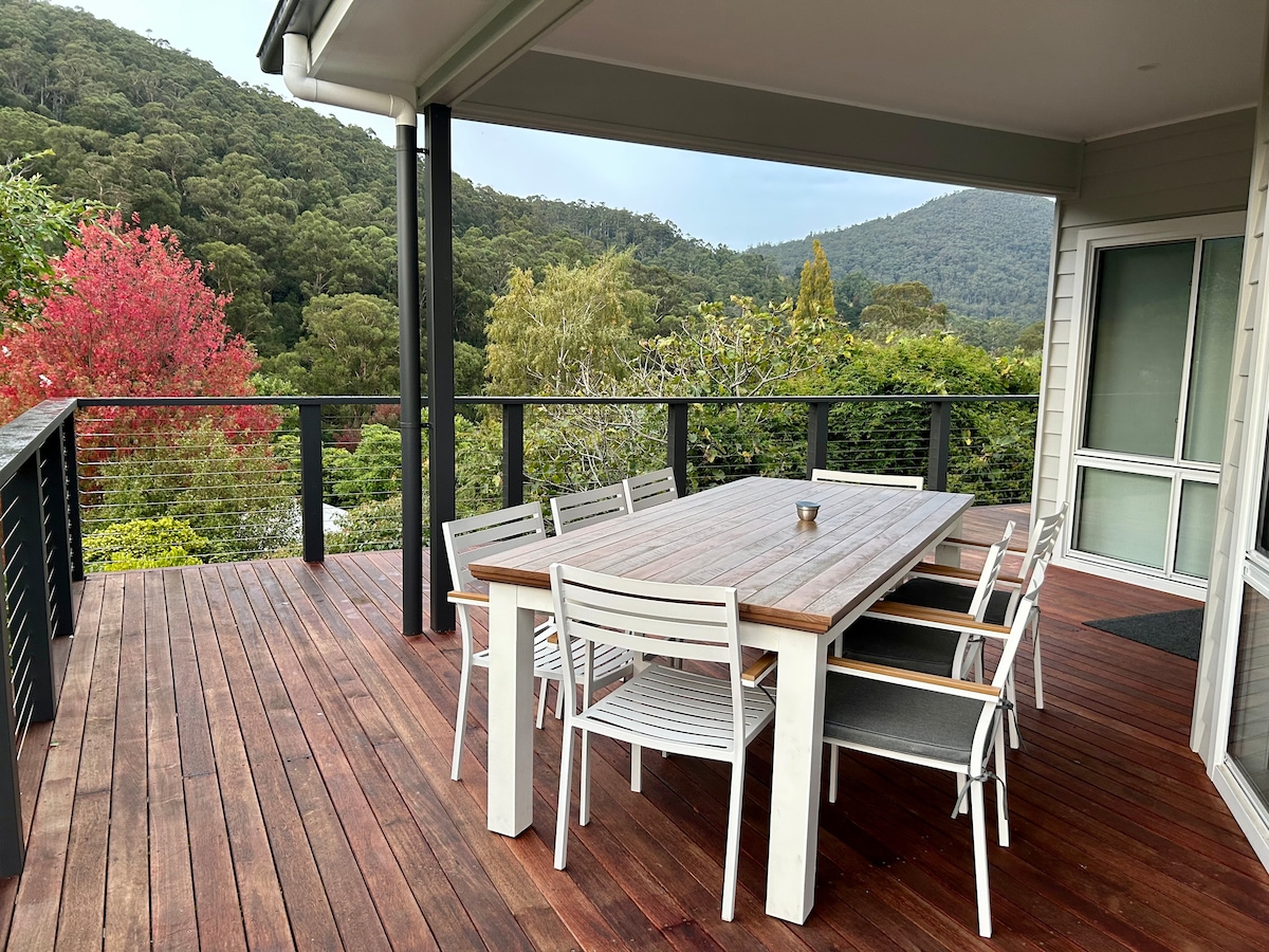 Esta propiedad está a solo 3 minutos de la colina del pueblo de Warburton, pero parece mucho más escondida. Hay dos edificios aquí que fueron cuidadosamente construidos para mirar en direcciones opuestas para una máxima privacidad. Hay mucho que ver en los terrenos, incluido el arroyo y los exuberantes jardines. Si quieres aventurarte más a pie o en bicicleta de montaña, encontrarás que estás muy cerca del sendero del Acueducto O'Shannassy de 30 km de largo y del sendero Warburton que llega hasta Lilydale.