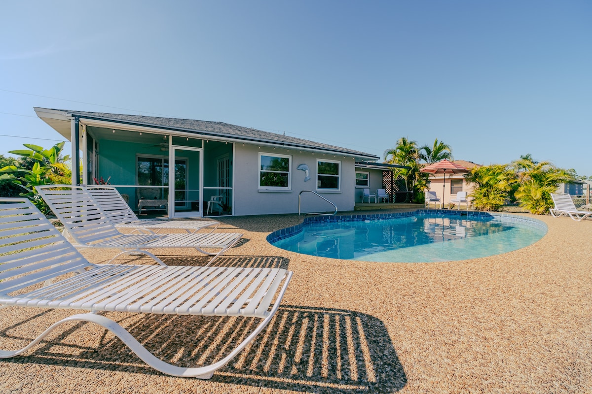 ¡Te damos la bienvenida al paraíso! Esta casa de 4 dormitorios y 2 baños que admite perros, con piscina climatizada y spa, cuenta con un gran patio vallado y una zona de lanai de gran tamaño. Tiene capacidad para 6 huéspedes y ofrece mucho espacio para reunirse. Situado a 15 minutos de Warm Mineral Springs, del campo de entrenamiento de los Atlanta Braves y a 30 minutos de las playas de Englewood/Venice. Situado a 5 millas de la I75 y cerca de todas las atracciones del hermoso suroeste de Florida. Esta casa ofrece la combinación perfecta de una casa de campo y estar cerca de todo.
