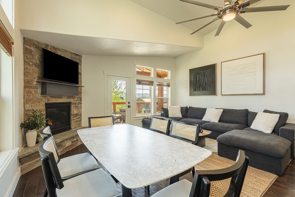 Este elegante departamento tiene unas vistas impresionantes de los centros de esquí de Deer Valley y Park City, a pocos minutos de distancia, con vistas al embalse Jordanelle y al río Upper Provo, en una nueva comunidad de casas de lujo llamada Benloch Ranch. Sentate en el jacuzzi privado para 7 personas o en la sauna finlandesa al aire libre, disfrutando de las magníficas vistas, incluso haciendo yoga al aire libre en la terraza, o relajándote después de un día de esquí, senderismo, ciclismo, pesca con mosca, surf de remo en los estanques del vecindario o en el lago cercano, u otras actividades en el área de Park City.