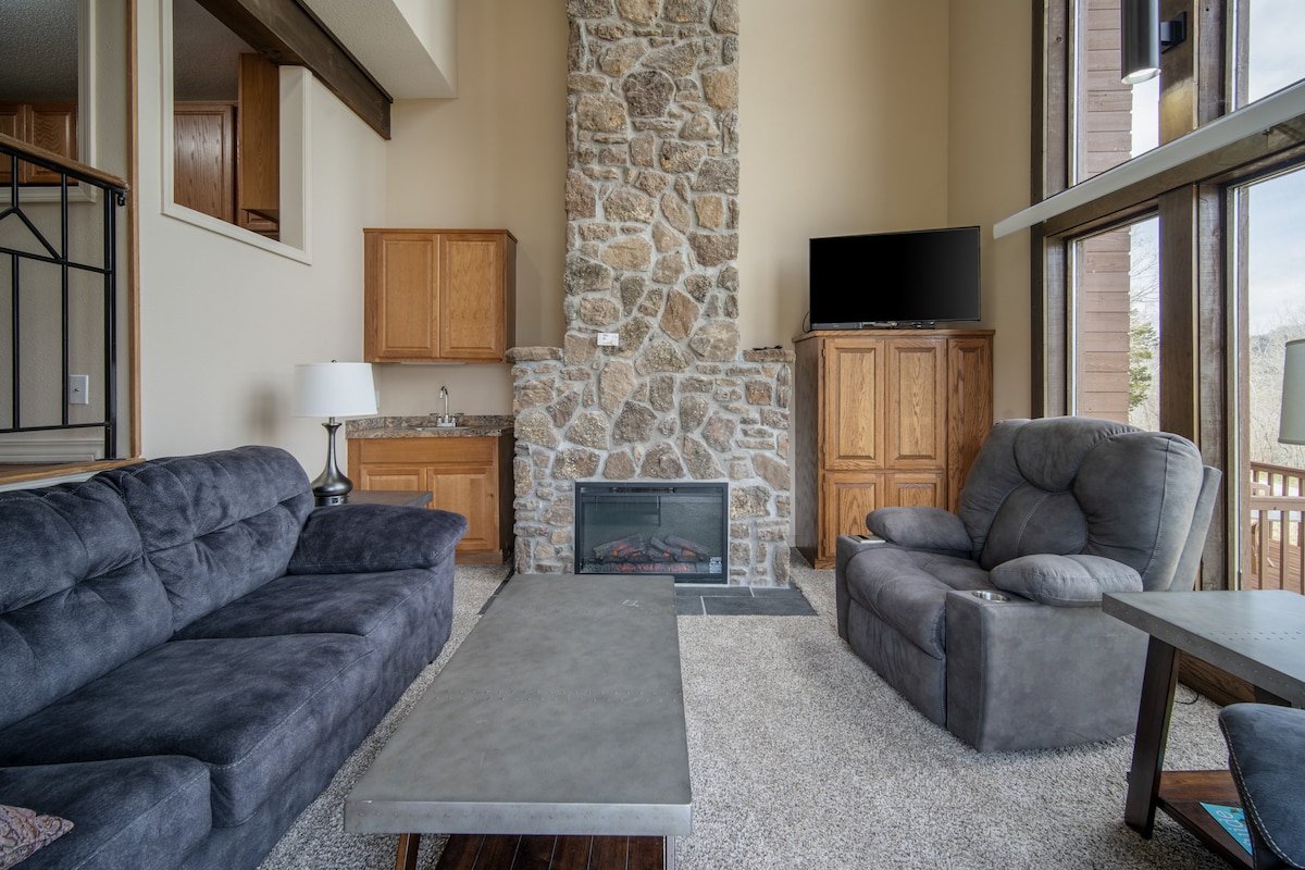 Escape to a brand-new, 2-story treehouse near Beaver Lake! Enjoy nature views from the deck with a recessed stock tank hot tub, stay cozy with an electric fireplace, and cook in the fully stocked kitchen. This unique retreat offers 2 bedrooms (one is a loft accessed by ladder), 3 beds, and sleeps 5. With fast WiFi and a mini-split HVAC system for room-specific climate control, you'll feel secluded yet close to Rogers' attractions. Perfect for a peaceful, modern getaway!