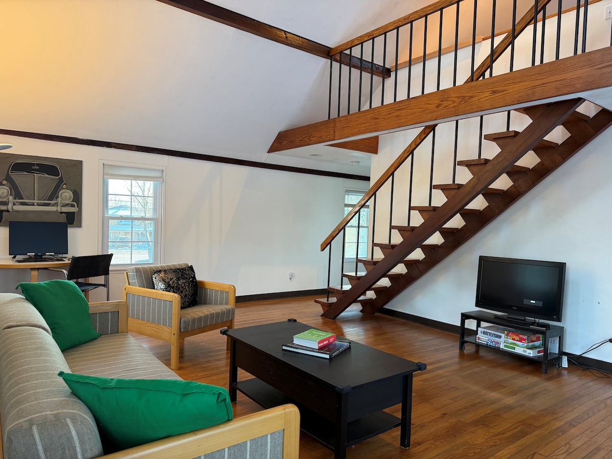 Disfruta de las impresionantes vistas de la bahía de Narragansett, incluyendo Jamestown, Fox Island y los puentes a Jamestown y Newport. Despiértate con amaneceres espectaculares y los sonidos del agua bañando la orilla. Este apartamento de dos dormitorios con sala de estar abierta está a dos minutos de Wickford, a 15 minutos de Jamestown, Newport y a 20 minutos de URI. La sala de estar se abre a una terraza privada para asar a la parrilla, relajarse o ver la actividad del barco mientras la luna sale sobre la bahía. Kayak, natación y otras actividades acuáticas en el lugar.