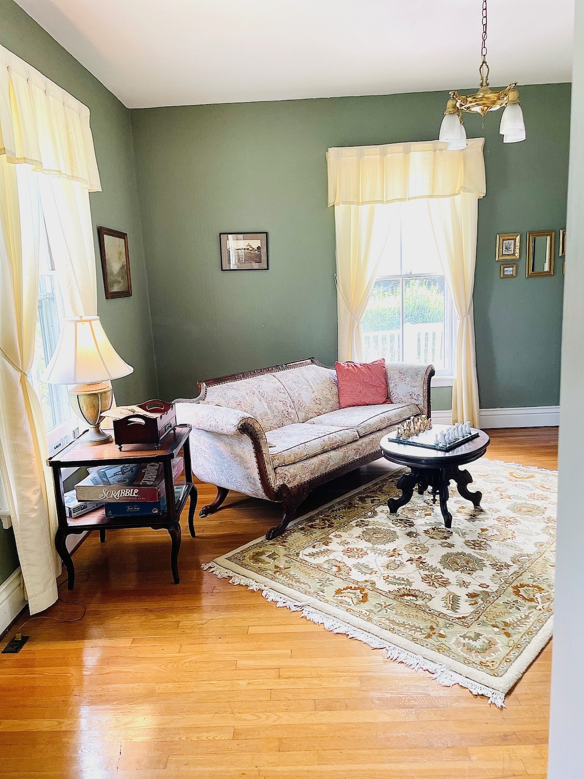 Dos camas individuales en una casa clásica de Nueva Inglaterra cerca del mar