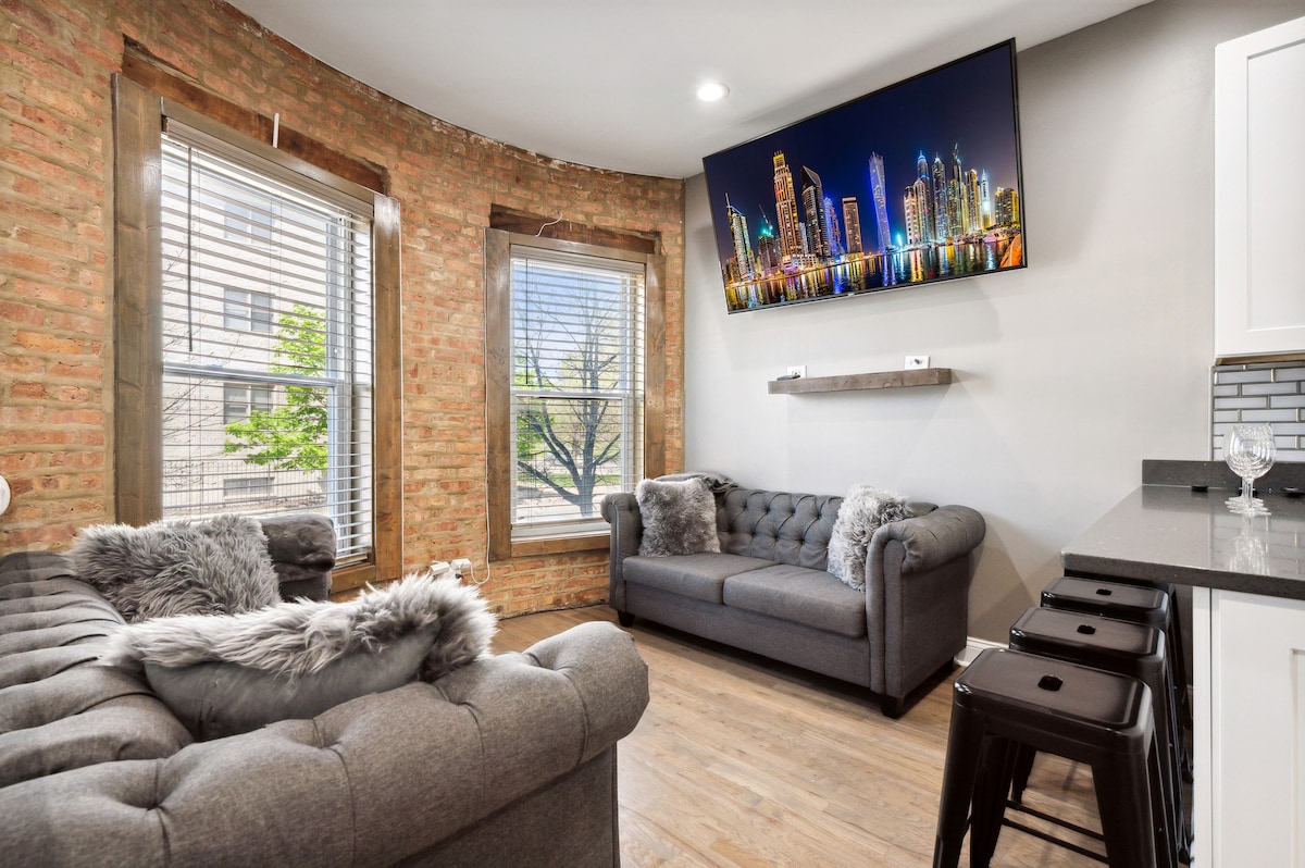 2-level condo near UChicago & Hyde Park with TWO 85” Smart TVs, PS5 gaming lounge, blazing-fast 1-Gig Wi-Fi, free street parking, and space for up to 10 guests. • Free street parking (no permits) • Central air & heat • 6 Smart TVs: 2×85”, 2×75”, 2×55” • PS5 gaming lounge • Private condo — no shared spaces 3–4 min drive to UChicago campus, UChicago Medicine, Hyde Park dining, and the Obama Center site. Ideal for families, medical visits, and weddings. All streaming apps included!