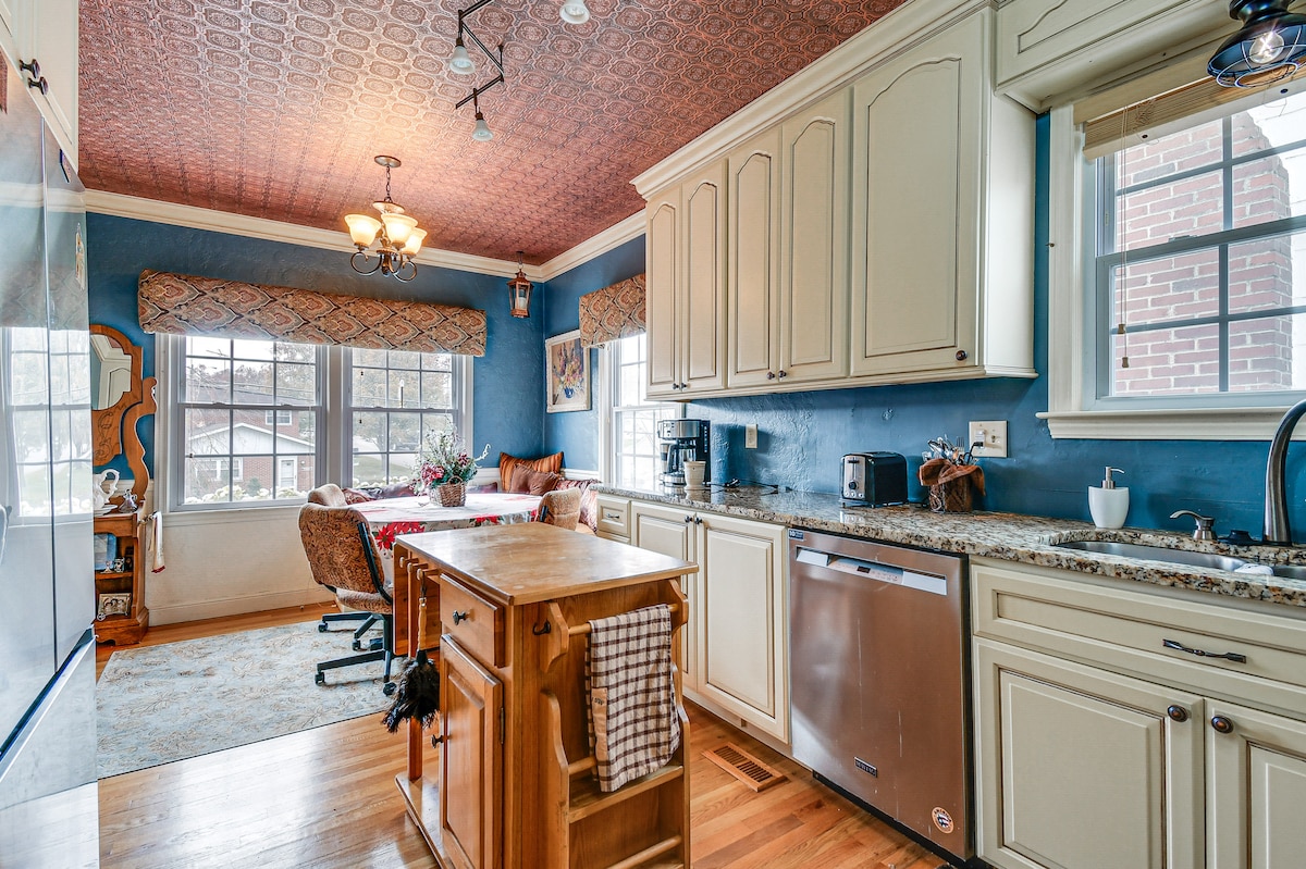 A harmonious balance of old & new. A space honoring its history while offering modern comfort. ✨New appliances, lighting, windows, HVAC, washer/dryer ✨2 TVs, including portable 55” - perfect for gaming ✨Original floors, tub, fireplace, trim; Large porch ✨Adjacent to restaurants, grocery & convenience stores ✨Walk 1 mile to Arena, shopping, movies, riverfront & parks ✨7 mins from Marshall, <10 mins from hospitals ✨Dog friendly fee per pet/night; max 2 dogs 💡Dining area can be used as 3rd bedroom