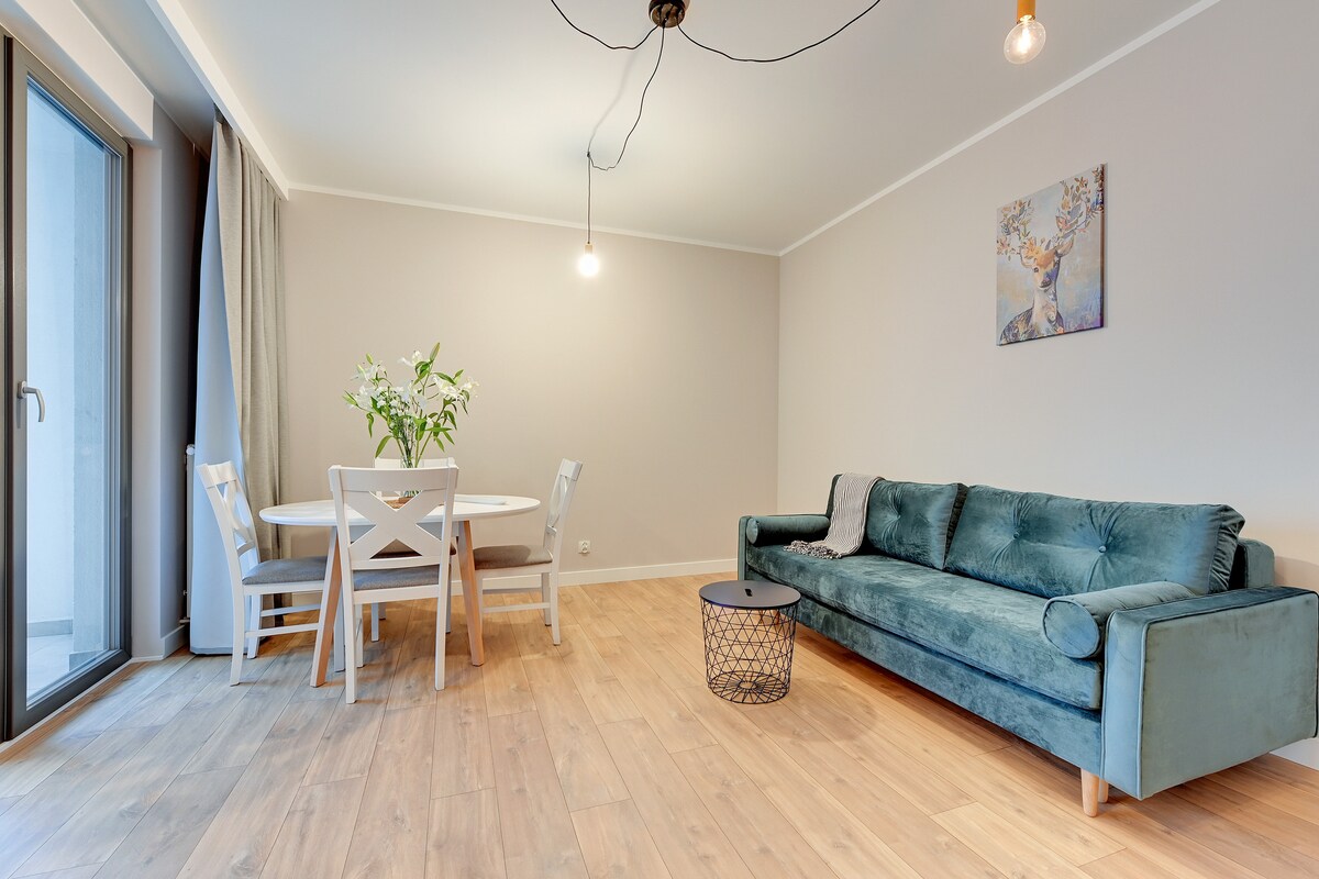 Disfruta de una estancia tranquila y elegante en este céntrico alojamiento. Un apartamento de nueva construcción, bellamente amueblado, perfecto para una estancia tranquila en el corazón de Gdańsk. Ubicado en el lado más verde del centro de la ciudad, justo al lado de Góra Gradowa. Aunque los lugares de interés histórico y cultural, las tiendas y los restaurantes están a solo 10-15 minutos a pie, la zona es tranquila y aislada. El alojamiento ofrece un diseño único, acogedor y muy cómodo, perfecto para una pareja y una escapada de fin de semana.