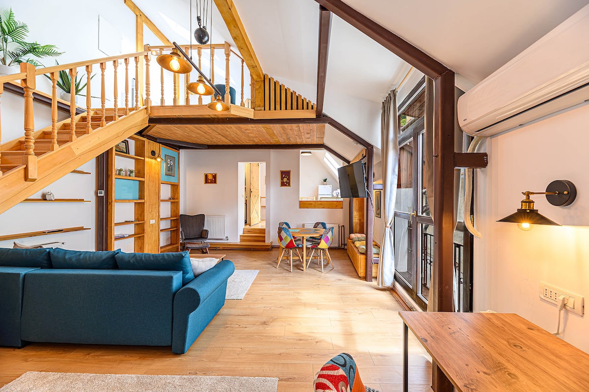 Bienvenido al oasis urbano recién renovado en el corazón del vibrante centro de la ciudad de Brasov. Disfruta de un retiro tranquilo con una decoración inspirada en Bali y comodidades modernas. A solo 350 metros de monumentos históricos, cafeterías de moda y boutiques artesanales, como la plaza del Consejo, la calle de la Cuerda y el Museo de Arte.