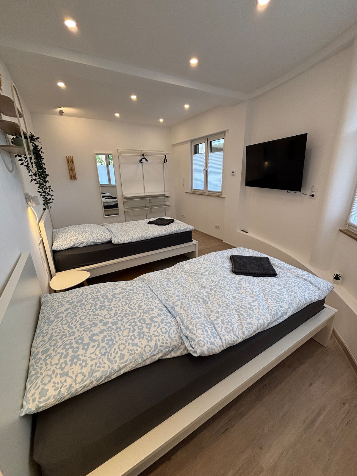 Detached, solidly built bungalow, 44 m², 2 rooms, kitchen, bathroom with walk-in shower and small garden with terrace and barbecue. Bedroom with double bed (1.80 x 2.00 m) and large wardrobe, living room with pull-out sofa bed for up to 2 additional guests. The bathroom and kitchen were completely renovated in January and February 2026. As a welcome gift, you will find 1 bottle of cola, 1 bottle of water and 1 bottle of our local beer (Kölsch) per adult in the fridge.