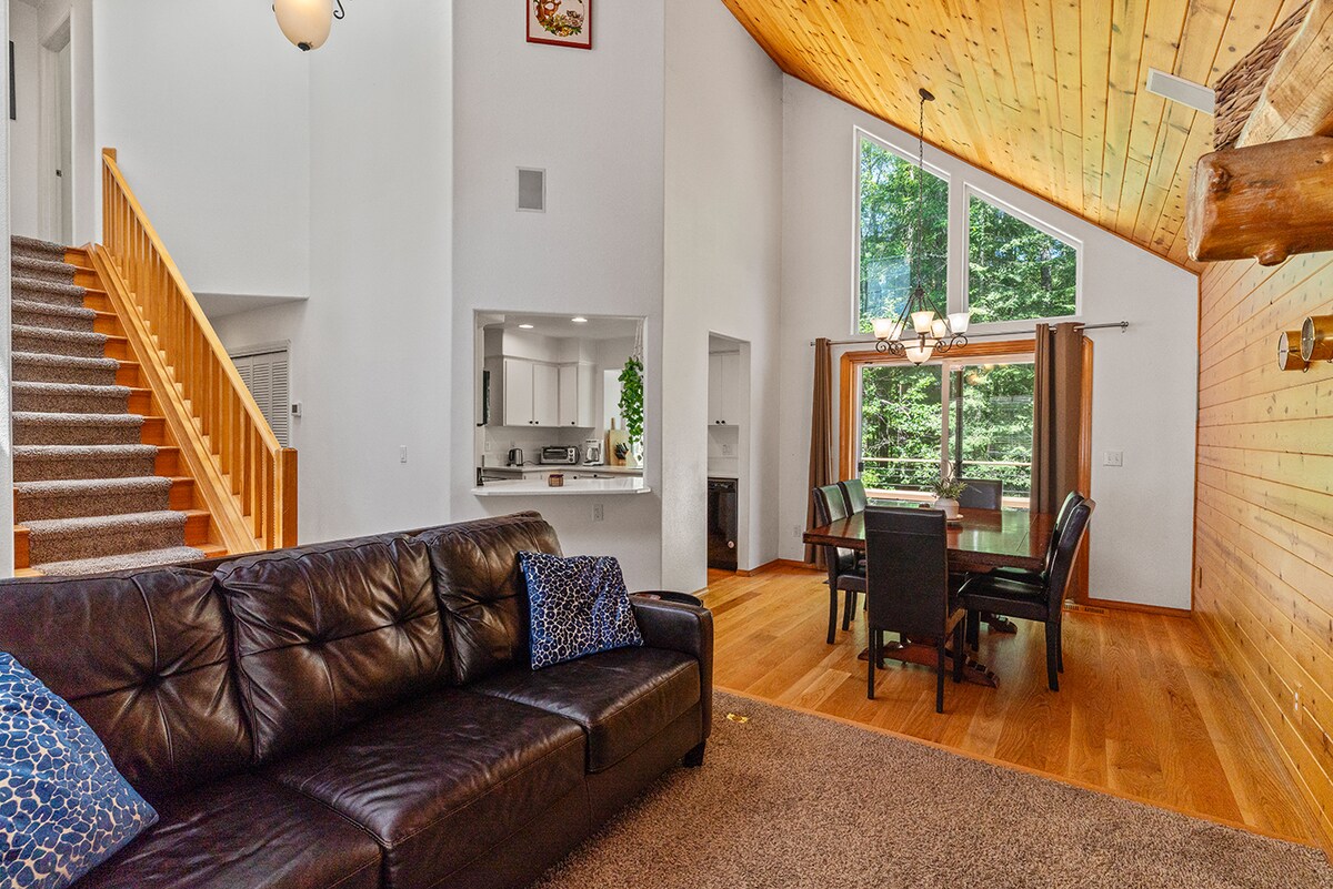 Relájate con tu familia en este tranquilo refugio en el río Sandy. Este alojamiento personalizado cuenta con hermosos detalles de cedro de Alaska, techos abovedados y una acogedora chimenea de gas en una gran habitación llena de luz. Relájate en el jacuzzi mientras escuchas el río o da un paseo por el sendero del río. Cerca de senderismo, ciclismo, deportes de nieve, restaurantes y tiendas de comestibles. Los huéspedes también tienen acceso de temporada a los servicios comunitarios, como piscina y canchas deportivas. Esta es la escapada perfecta para crear recuerdos inolvidables.