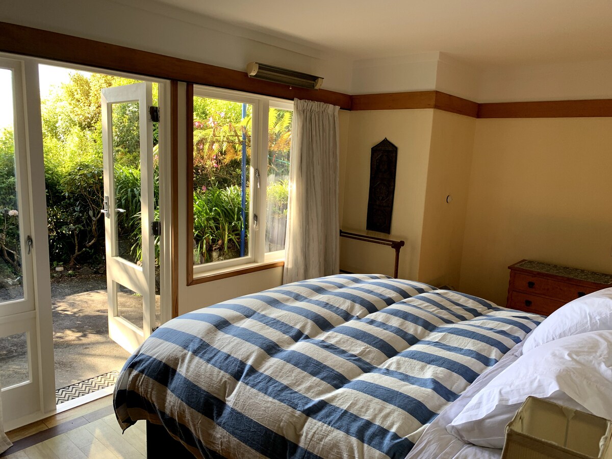 Estudio en un encantador entorno de jardín. Disfruta de los pájaros carpinteros en el árbol fuera de la ventana del estudio. Capacidad para dos personas (una cama de matrimonio). Desayuno (artículos proporcionados para que puedas prepararte un desayuno continental). Terraza con impresionantes vistas a la bahía de Evans. A 10 minutos del aeropuerto, a 7 minutos a pie de dos playas, a 25 minutos a pie de la icónica bahía Oriental hasta la ciudad o a 5 minutos en el autobús número 14. A 25 minutos a pie del monte Victoria para disfrutar de vistas de 360 grados de Wellington. Aparcamiento gratuito en la calle. Zona privada y tranquila.