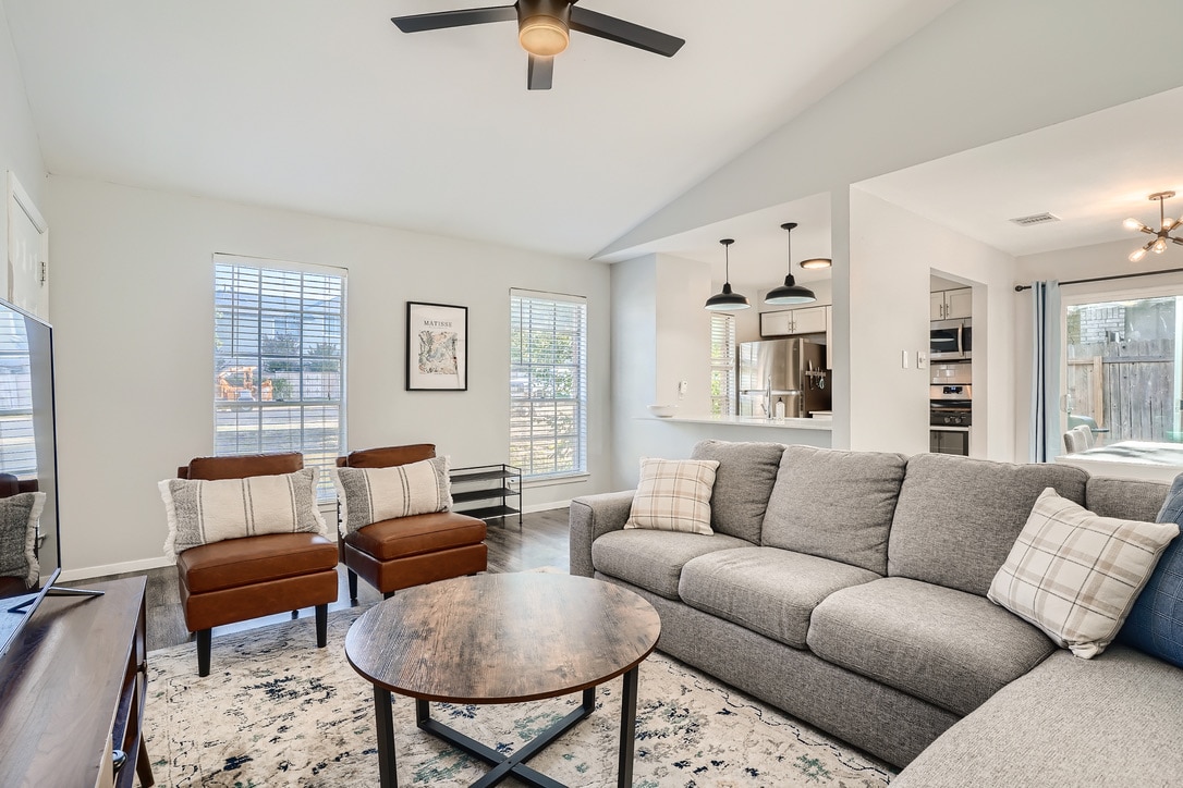 Modern 2,500 sq. ft. home in a quiet neighborhood with a large fenced yard and spacious deck—perfect for families and pets. This home features multiple living areas, a fully equipped kitchen, and plenty of room to accommodate large groups that make it great for both fun or work. Just a 14-min drive to Q2 Stadium, 19 mins to Downtown, and close to the Apple Campus. Whether you’re visiting for work, play, or a bit of both, this home has everything you need for a comfortable and connected stay.