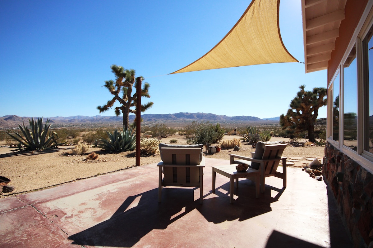 Cabaña PRIVADA en 5 acres rodeada por las vistas y sonidos abiertos del desierto. Espectáculos de estrellas desde el jacuzzi, café por la mañana y amaneceres en el patio del amanecer. El patio al atardecer está vallado para la privacidad de la bañera de hidromasaje (nivel del traje de cumpleaños) y tu perro. La cabaña está situada en una ubicación muy solicitada. Está cerca, pero lo suficientemente lejos como para la paz, la privacidad y las noches oscuras y estrelladas. El pueblo está a solo 8-10 minutos, y la entrada de la puerta oeste del Parque Nacional Joshua Tree está a solo 15 minutos de la cabaña.