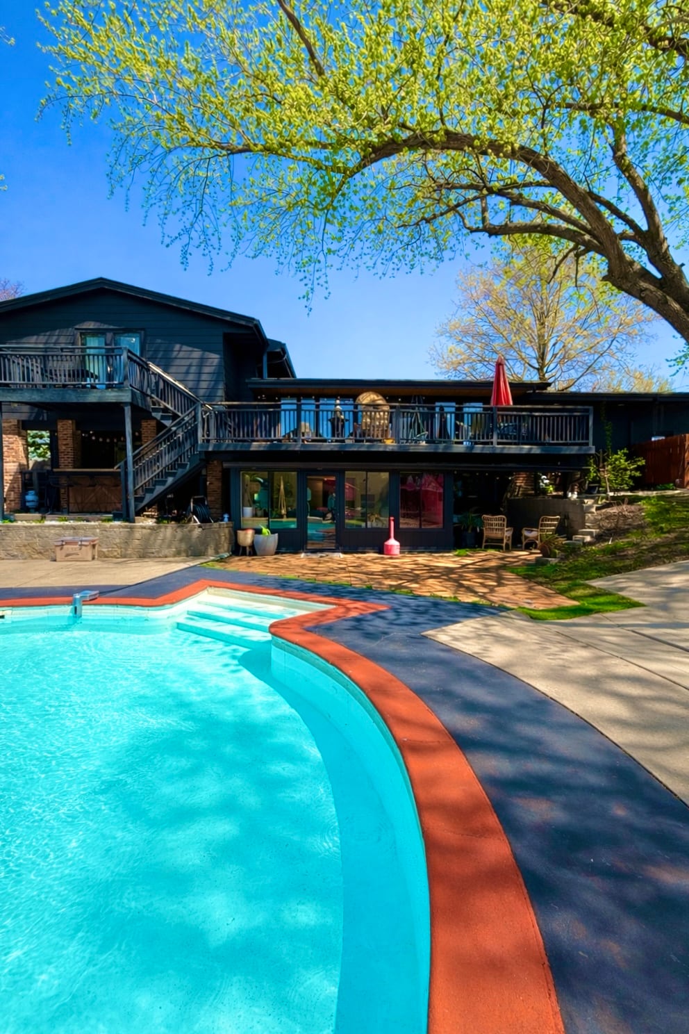 ADDITIONAL PHOTOS COMING SOON! Welcome to The Hidden Keyhole, a unique multi-level family-friendly home with a private 8ft deep keyhole-shaped seasonal pool and diving board, a huge fenced yard on a half-acre, a fire pit, grill, and patios. Sleeps 12+, 4 bedrooms, 3.5 baths, jetted tub, fitness area, bar, piano, multiple living spaces. Fast WiFi, Roku TVs, full kitchen, washer and dryer, pet friendly, keyless entry. Quiet, safe central location, 15 minutes to downtown, Jordan Creek, and More!