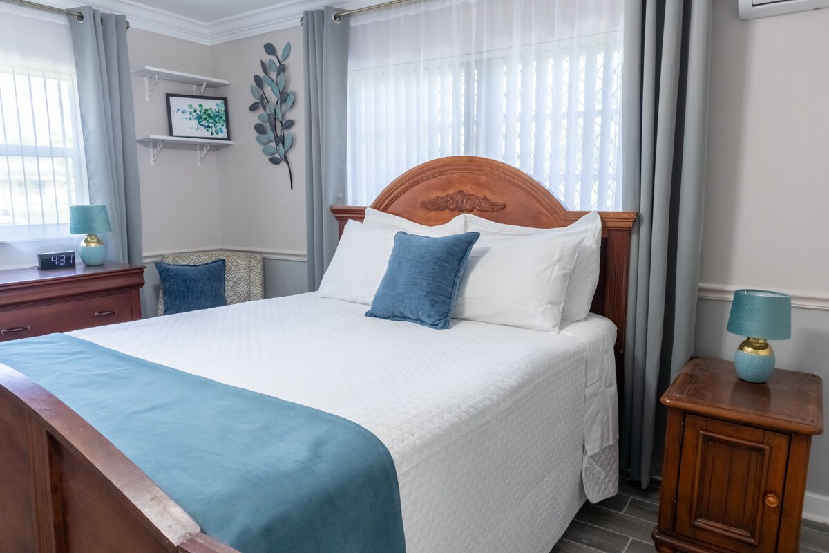 Relájate y desconecta en este alojamiento tranquilo y elegante. Deja que este sea tu hogar lejos de casa. Este AirBNB tiene todo lo que necesitas. También tenemos un colchón inflable. Ya sea que visites las hermosas Bahamas por negocios o placer, esta es la ubicación ideal para acceder a todo lo que Freeport tiene para ofrecer. A solo seis minutos a pie de una plaza comercial que cuenta con una tienda de comestibles, una licorería, un gimnasio, una cafetería y un banco. A 3 minutos en coche de la playa para sentir la arena en tus pies. Port Lucaya está a 3-5 minutos en coche.