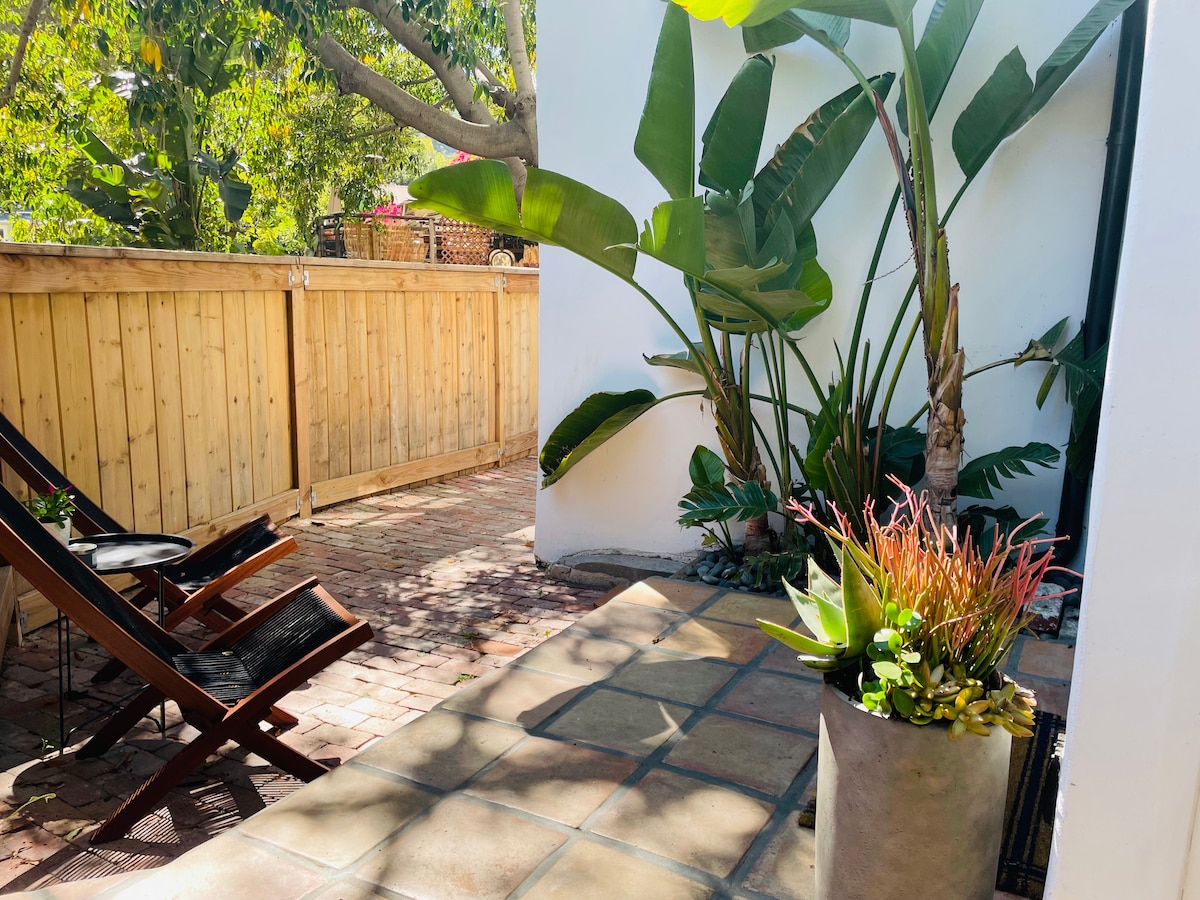 ¡Ubicación céntrica, segura y atractiva en West Hollywood! Acceso privado a la elegante y tranquila suite con luz solar, tranquila pero cerca de todo. Este chalet de invitados de 1920 te hará sentir como en casa desde el momento en que entres. Las puertas francesas rodean la sala de estar, la cocina pequeña y el comedor, conectan con una terraza privada al aire libre, dormitorio y baño. Situado en el corazón de WeHo (a 1 manzana de la calle principal). Todo lo que necesitas para tomar el sol, socializar o recargar energías antes de emprender aventuras en Los Ángeles.