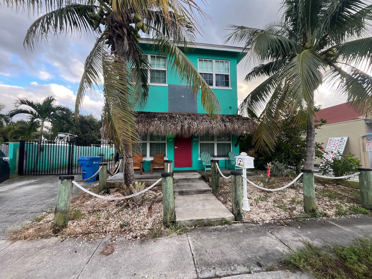 Surfer-style coastal shack with inviting front porch and private tiki hut patio in back. Features a modern kitchen, updated bath, queen bed, and pull-out couch. Located in a friendly, walkable neighborhood across from a classic car dealer, close to beaches, fishing bridge, nature preserves, and tennis courts. A perfect tropical retreat with laid-back charm and modern comfort—where every day feels like a beach vacation!