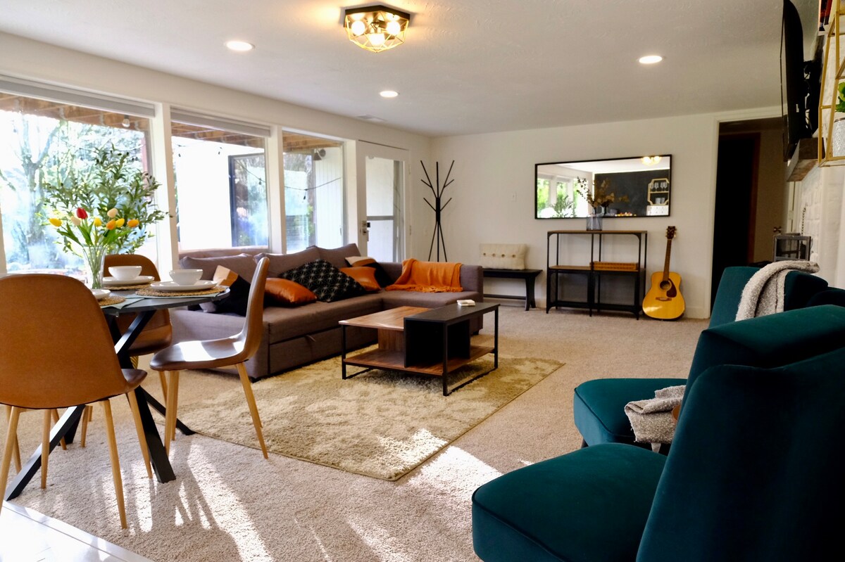 Siéntete como en casa en esta acogedora ADU independiente y explora la floreciente escena del centro de Beaverton, o súbete al Max para un viaje rápido a Portland. Con una puntuación de 81, puedes caminar a una gran variedad de restaurantes y parques en cualquier momento, y a un maravilloso mercado de agricultores los sábados. Este alquiler incluye una entrada independiente, patio, cocina completa, lavadora y secadora, comedor, cama tamaño queen y TV grande. Los propietarios están en el lugar y están ansiosos por asegurarse de que tengas la mejor experiencia posible.