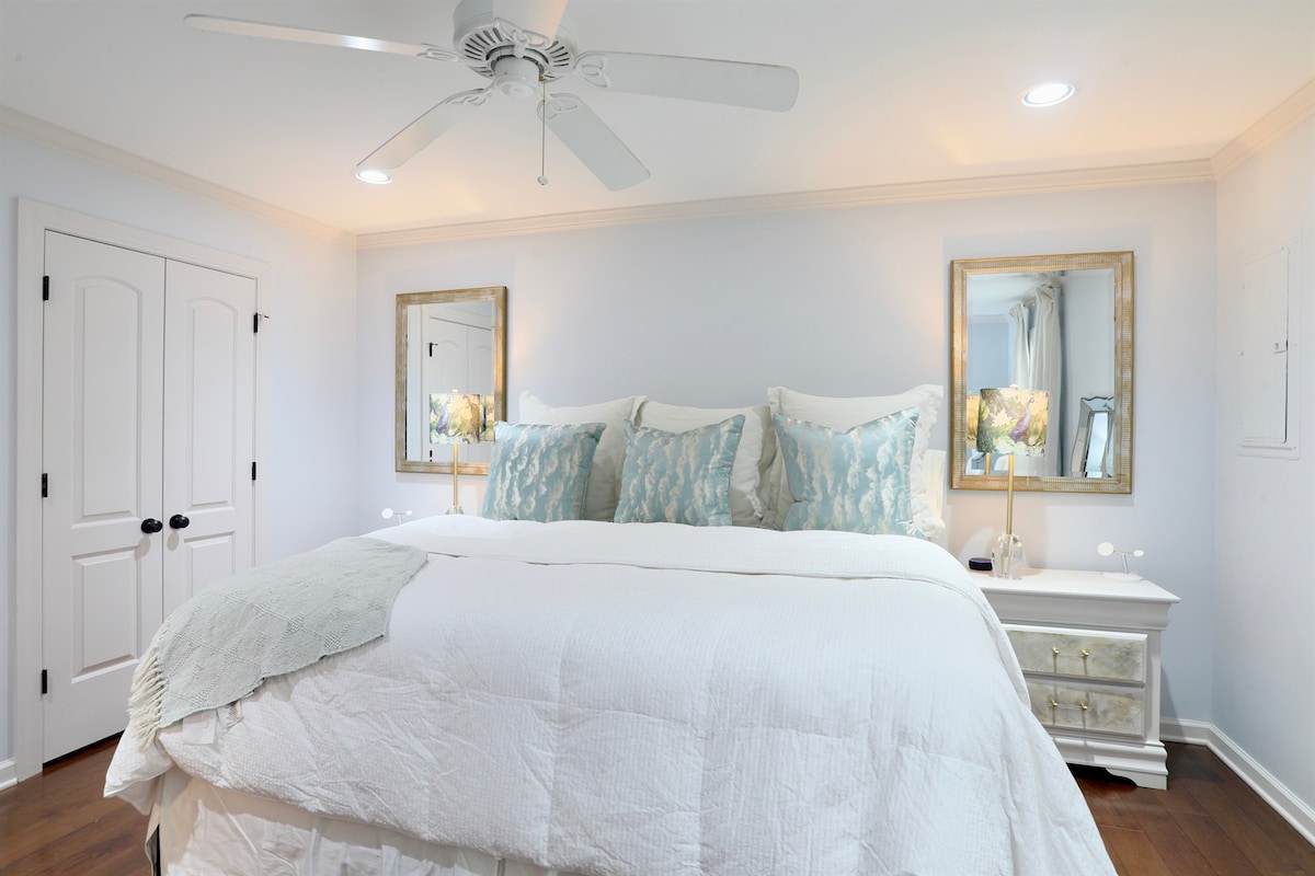 This stunning private studio rivals Baltimore’s top hotels and is packed with premium amenities most Airbnbs don’t offer. Once a mystery church set for demolition, it’s now a fully renovated mid-century modern gem with private access, a fully stocked kitchenette, new hardwood floors, and a luxe stone tile rain shower. Sleep soundly with down feather bedding, enjoy luxury toiletries, a 55” smart TV, and courtyard views through gorgeous French doors—all in a prime location with easy, free parking