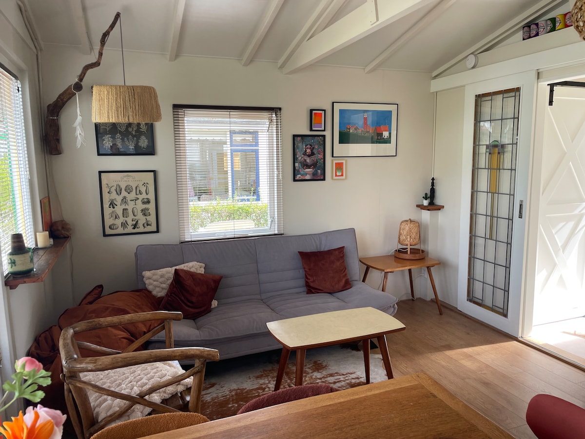 Esta casa decorada con buen gusto y luminosa está equipada con todas las comodidades, incluyendo sala de estar con amplio invernadero, chimenea, nueva cocina moderna, hermoso suelo de baldosas con calefacción por suelo radiante, 2 dormitorios y un amplio baño. Hay un gran jardín orientado al sur. La hermosa playa está a poca distancia caminando. Nuestra casa está ubicada en el parque bungalow de 4 estrellas "Kijkduinpark" donde puedes utilizar las instalaciones: piscina cubierta, supermercado, restaurante, parque infantil, cama elástica y alquiler de bicicletas.