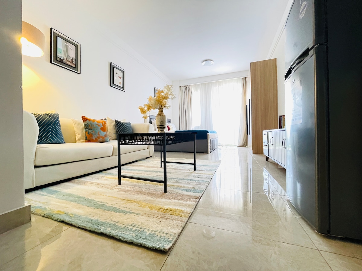 Relájate en este refugio único y tranquilo de 1 cama. Es un departamento nuevo de 1 cama;limpio con una cama tamaño queen. Está equipado con excelentes duchas de agua caliente, cómodos sofás modernos e internet de alta velocidad. Encontrarás una cocina bien equipada, un concepto minimalista y unas vistas impresionantes de la ciudad. Cuenta con un generador de respaldo completo, una piscina climatizada, un gimnasio de última generación y un área de juegos para niños. La ubicación también es excelente con transporte gratuito.
