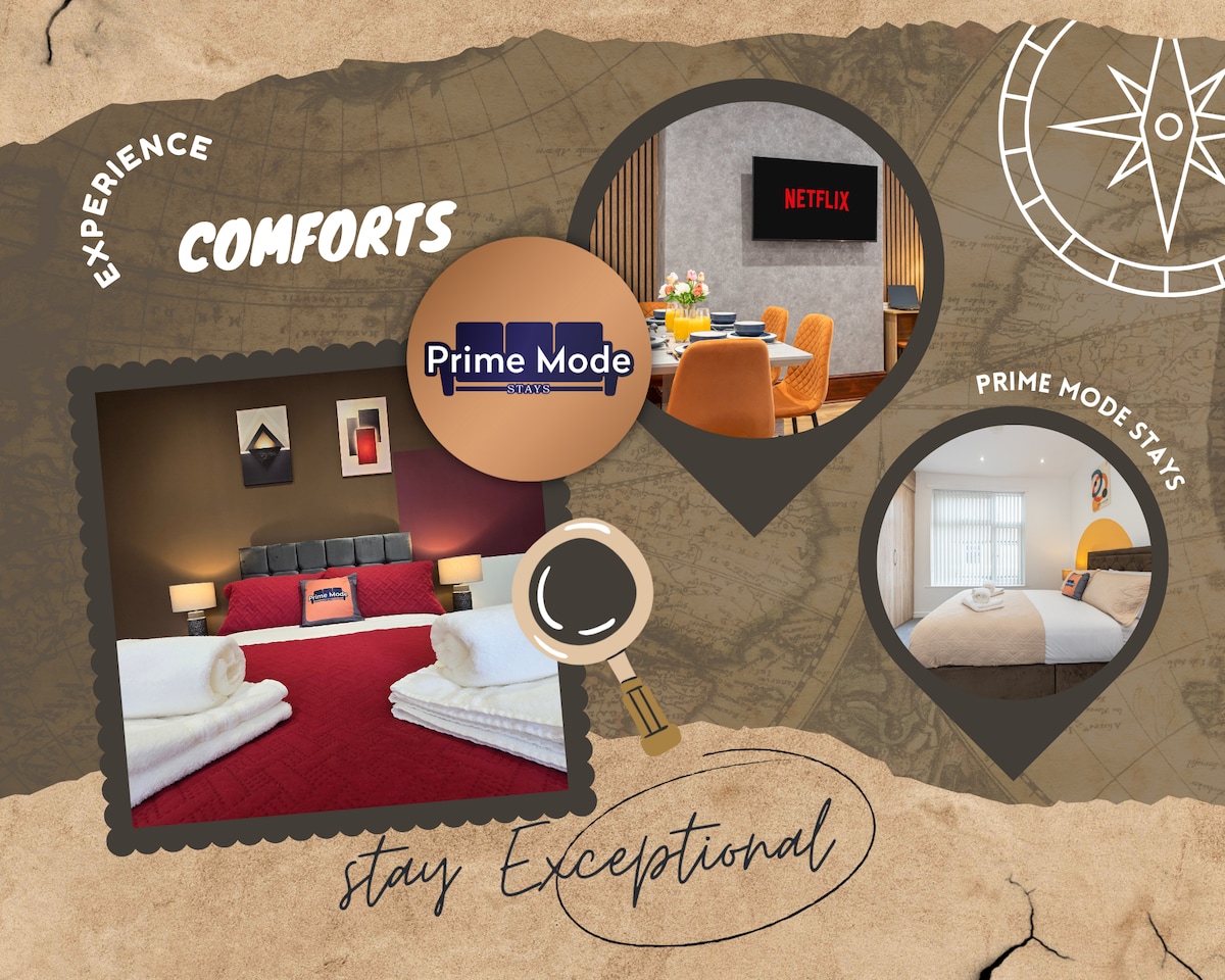 Moderno de 4 dormitorios • Estacionamiento gratuito • Estadías de trabajo y ocio