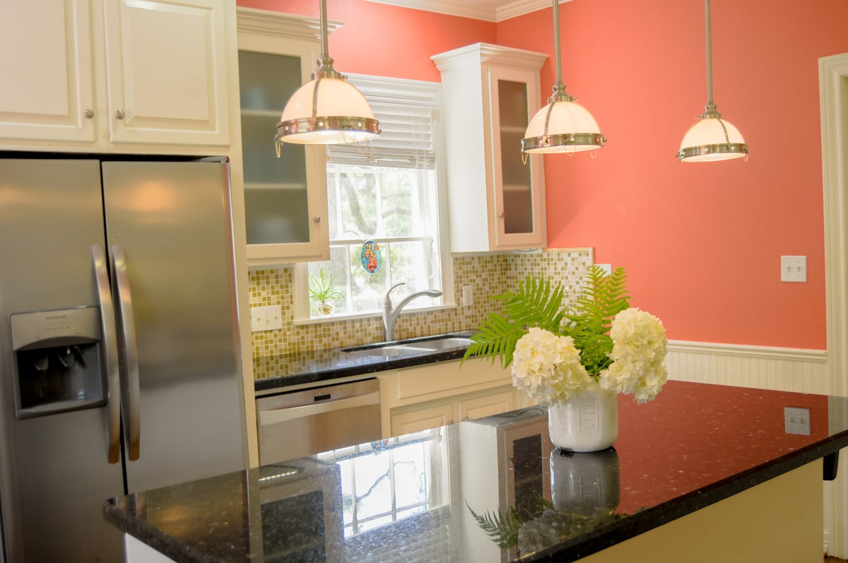 Amplia finca en la ciudad perfecta para familias, vacacionistas, viajeros de negocios, pequeñas bodas, reuniones y retiros. Este anuncio incluye los tres dormitorios de la casa principal, un apartamento de garaje muy bonito (consulta nuestro anuncio Robin's Nest para obtener más información) para un total de 3 baños y 4 dormitorios tamaño queen más futones tamaño queen y camas otomanas/convertibles individuales para áreas de dormitorio adicionales. Desayuno ligero de autoservicio y barra de café.