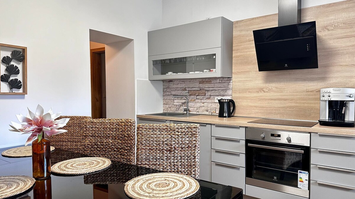 Despertarse con vistas a las colinas de Vizovické vrchy en medio de un huerto de espinos y el canto de los pájaros es la terapia perfecta para despejar la cabeza de la vida urbana. El sofá situado junto a una enorme ventana orientada al este con vistas a las montañas Vizovické vrchy y una gran ventana al norte con vistas a la plantación de espinos, lo puede utilizar para disfrutar de momentos tranquilos y saborear algo bueno. Durante la barbacoa al atardecer, el sol del oeste iluminará la terraza frente a nuestra casa, donde muchos gourmets demostrarán sus habilidades gastronómicas.