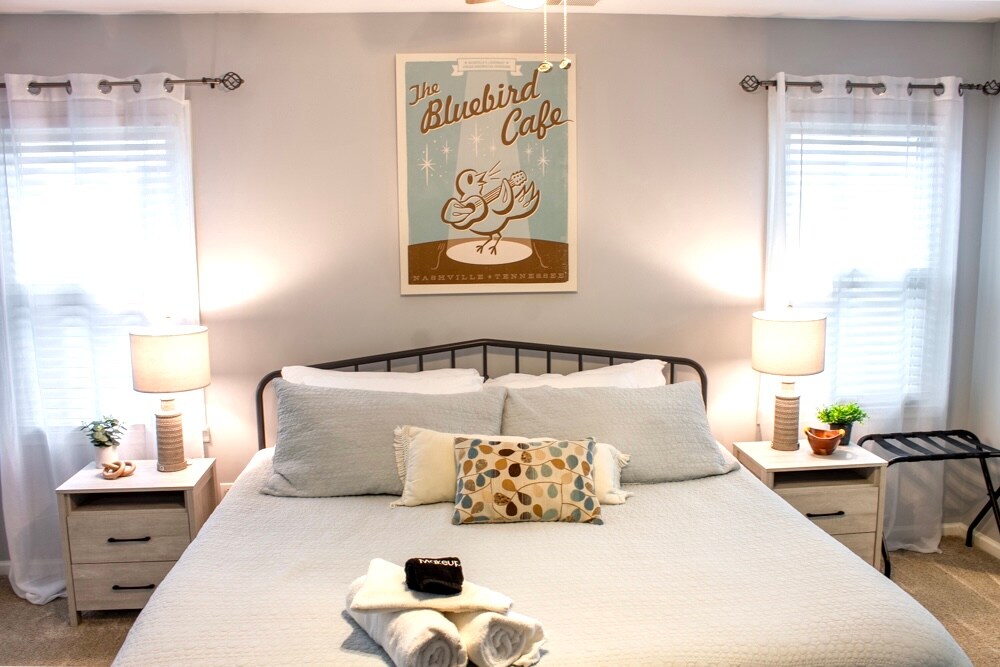 Espacio bellamente decorado enclavado en un entorno rural tranquilo cerca de Nashville en 2,5 acres. Relájate y desconecta después de un largo día con nuevos colchones tamaño queen de espuma viscoelástica, sábanas suaves, muchos lugares para deshacer las maletas, aperitivos de cortesía y cafetera. Patio cubierto para disfrutar llueva o haga sol. Wifi ultrarrápido con Ethernet; TV con Netflix incluido.
