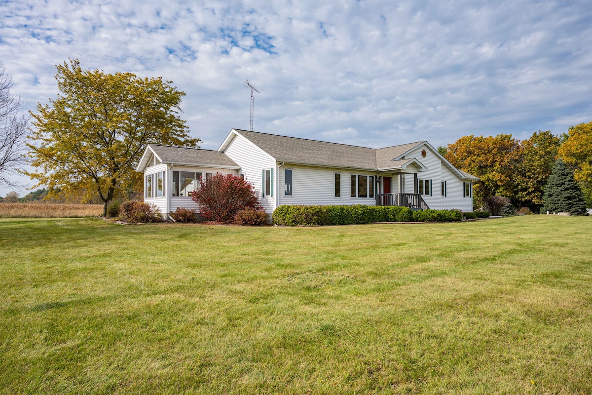 Disfruta de la casa más emblemática de un pequeño pueblo a solo unos 30 minutos de Wisconsin Dells, Baraboo y Spring Green. Esta casa de estilo rural fue construida en la década de 1920 y se encuentra a poca distancia a pie de algunos deliciosos restaurantes y bares. ¡Visita los parques acuáticos de Wis. Dells, Circus World (Baraboo), Devil's Lake State Park (Baraboo), House on the Rock (Spring Green), American Players Theater (Spring Green), Amish country (Loganville/Hillpoint) y mucho más! También tenemos licencia y estamos asegurados.