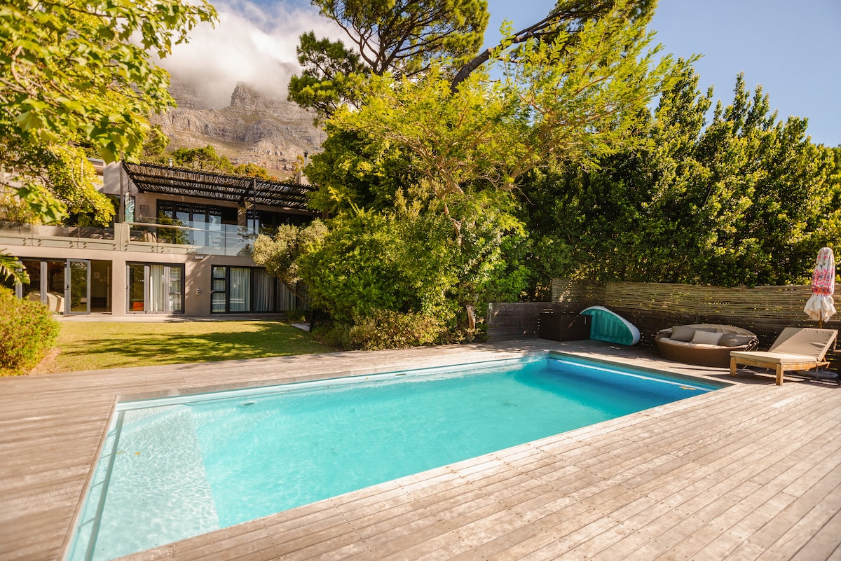 Come cool off in the sparkling pool of this three bedroom, modern chic contemporary villa. Centrally located in Cape Town City Bowl - Higgovale, situated on the slopes of Table Mountain. Clad almost entirely in timber and featuring floor-to-ceiling sliding doors, the indoor-outdoor experience of this home is exceptional. Free high speed fiber WiFi and secure parking for two cars. We have an inverter and Lithium battery to assist during loadshedding. A serene pad in the city. We Welcome you!!