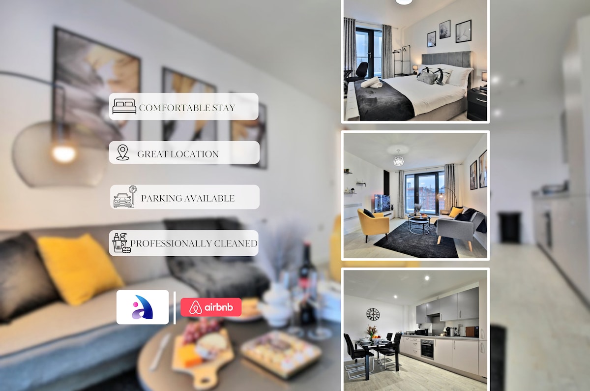 Ubicación privilegiada para viajes de negocios, personas solas y parejas. Ve a: ⚽ Old Trafford ⛴️ Salford Quays (0,5 millas) 🎥 MediaCity 🛍️ Lowry Outlet Mall 🍽️ Bares y restaurantes Parada 🚋 de tranvía de Anchorage (0,1 millas) Acceso al metro/tranvía: Centro de la ciudad de 🚆 Manchester en 10 minutos en tranvía o 5 minutos en Uber La 🎤 cooperativa en vivo está a 25 minutos en tranvía 🎪 Heaton Park está a 30 minutos en tranvía o a 20 minutos en Uber. Disfruta: 🅿️ Estacionamiento seguro gratuito. 📶 WiFi rápido 🛎️ Seguridad las 24 horas, 7 días a la semana, Perfecto para: ❤️ Parejas 👨👩👧 Familias Estancias 💼 de negocios