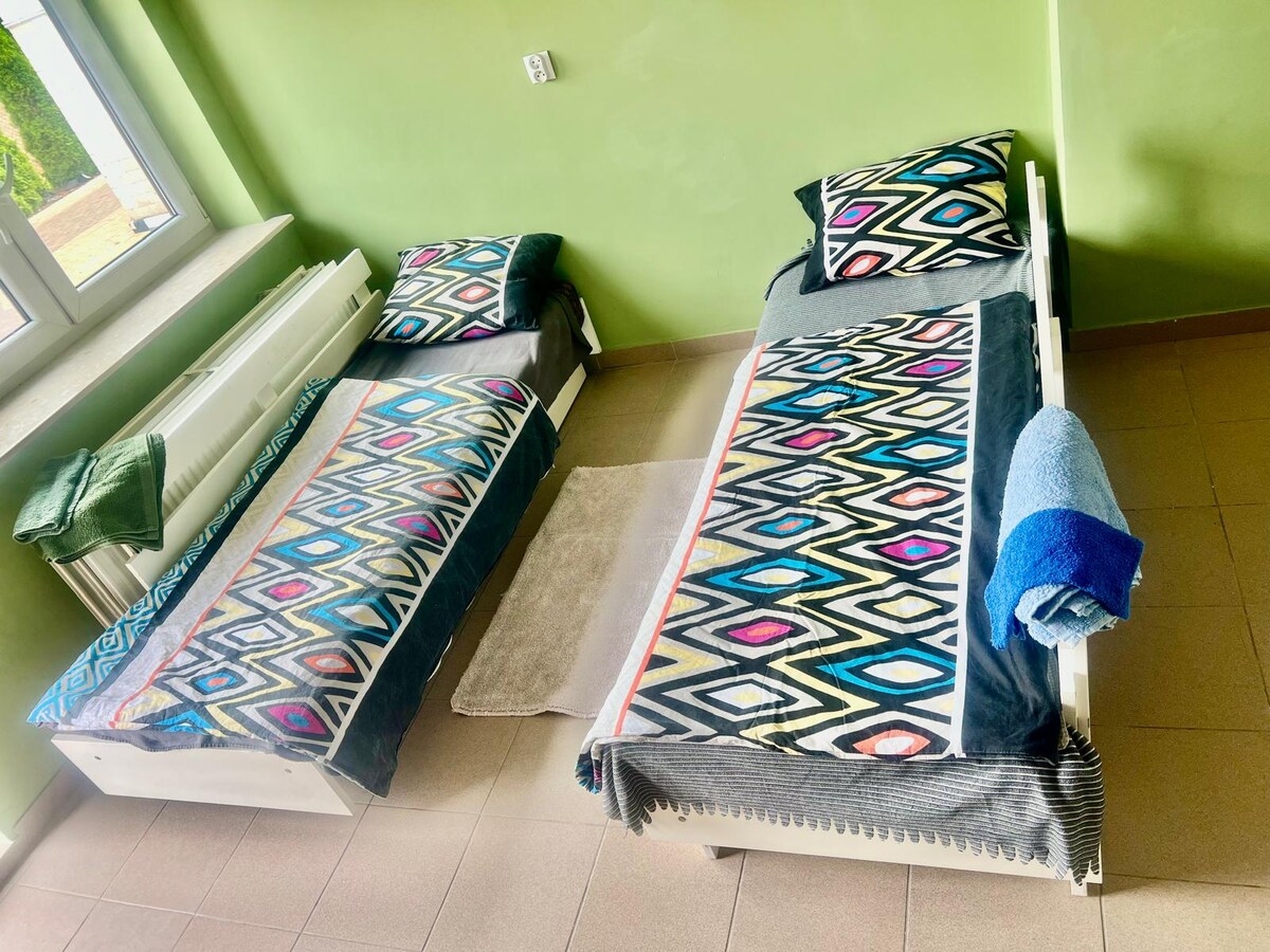 Nuestra casa es un asentamiento que consta de una casa con 3 habitaciones espaciosas, una gran cocina con estufa de azulejos, un baño, un porche y una terraza. La casa está rodeada por una gran parcela vallada. En la parcela hay, entre otros, hamacas, tumbonas, cenador con parrilla. La oferta incluye una bañera de hidromasaje ♨️ 💧 (con cargo adicional). Una botella de vino espera a cada uno de nuestros huéspedes. La gran superficie de la propiedad permite jugar al voleibol o al bádminton. En nuestro encantador pueblo también hay una hermosa playa de arena a orillas del río Liwiec.