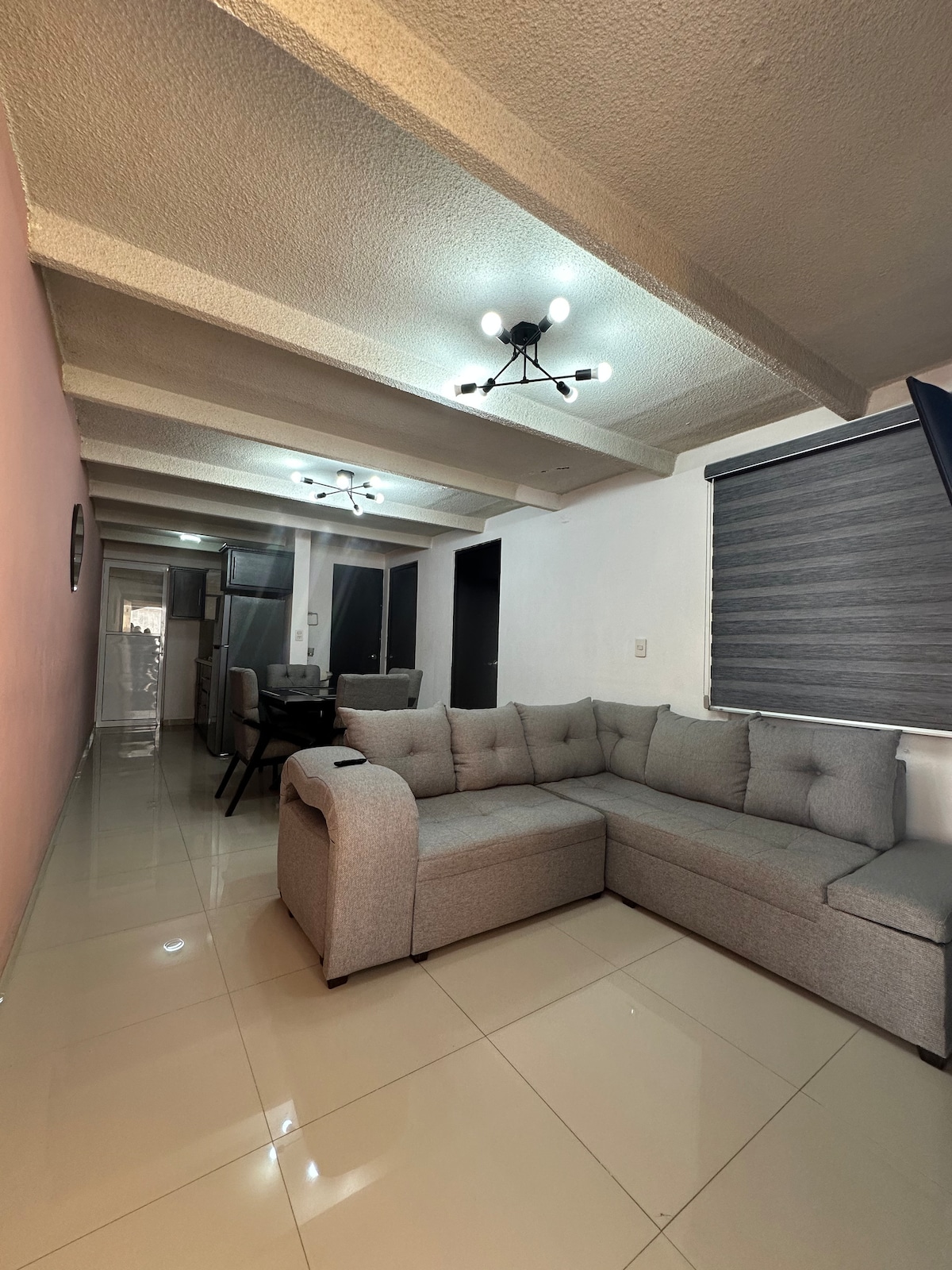 Horario de entrada: a partir de las 3pm (en ocasiones es antes), horario de salida: 12 del mediodía como máximo. Cuenta con excelente ubicación, 3 recamaras, 3 camas, 2 baños completos, un medio baño, sala, cocina integral, comedor, patio trasero, cochera con 2 espacios.