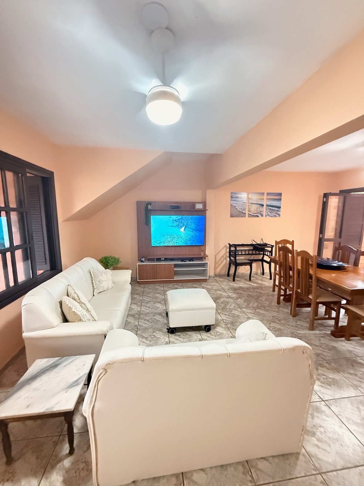 Antiga Casa das Três Andorinhas Uma casa histórica e muito querida em Rainha do Mar, com quase 70 anos de história e uma energia única que se sente desde a chegada. Diferente das casas de praia comuns ou de condomínios, a Vista House segue seu próprio estilo — cheia de personalidade, memória e charme. Espaçosa e arejada (400m² de terreno), com áreas e decoração criadas com amor. Sacada com vista para o mar, lazer para todas as estações e apenas 41 passos até a areia.