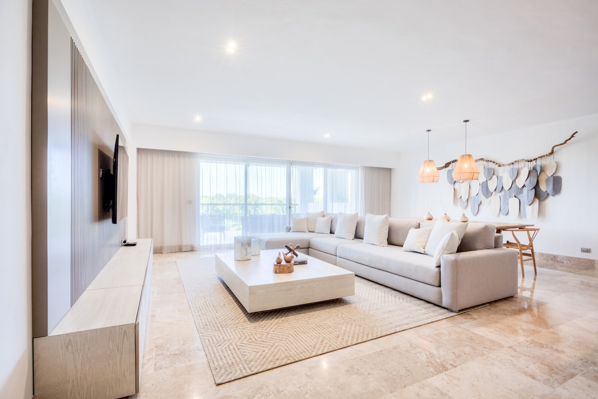 ✨ Casa Sol es un impresionante departamento de 2 dormitorios/2 baños amueblado por diseñadores en las lujosas residencias AWA. Disfrutá de servicios de estilo resort, como piscinas con jardines, una piscina infinita en la azotea, un bar en la piscina, jacuzzis, hamacas, gimnasio, estudio de yoga, espacio de coworking, seguridad las 24 horas, club infantil y parque infantil. Con una ubicación ideal en Playacar, a pocos pasos de la playa, la Quinta Avenida, tiendas, restaurantes y atracciones. Perfecto para familias, parejas o amigos que buscan comodidad y estilo. 🌞✨