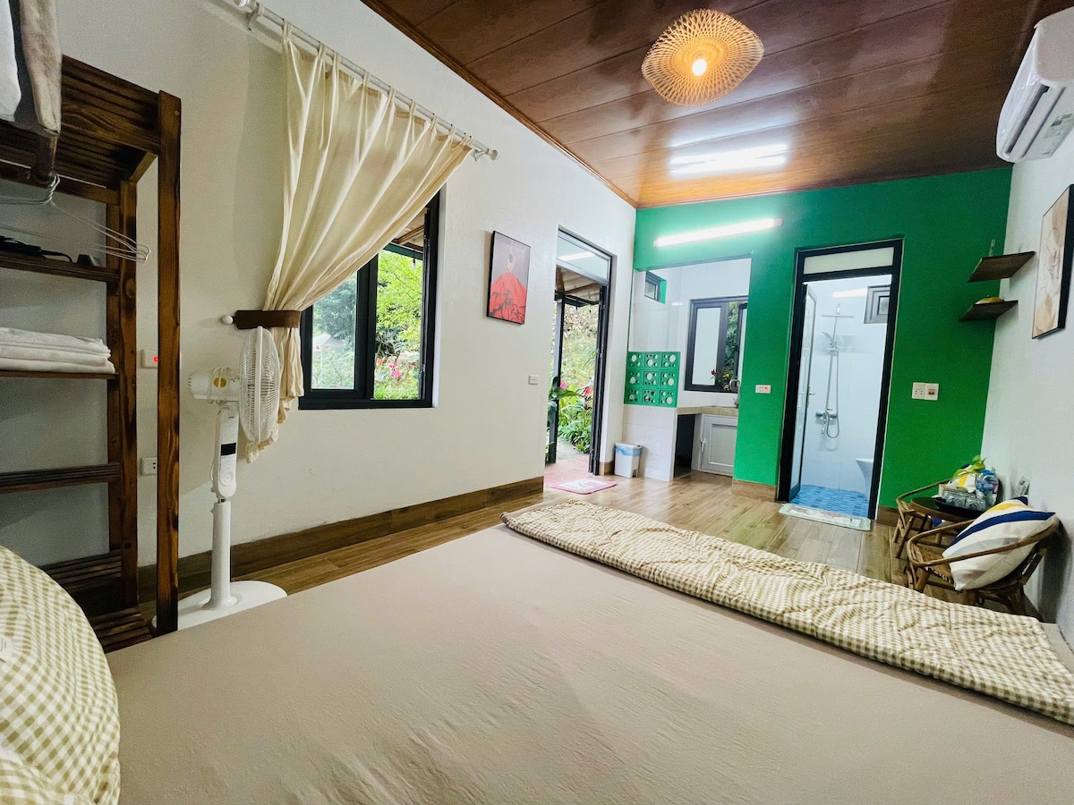 Nhà Tre Xanh 2 người view vườn hồng và đồi xanh
