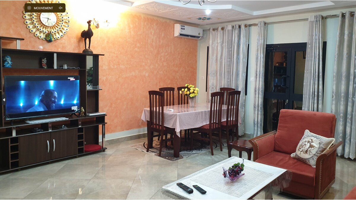 "First class Apartment in Bastos" Si busca un alojamiento seguro, lleno de encanto y un confort digno de su exigencia, situado en pleno centro de la ciudad y con todas las comodidades indispensables para una estancia de calidad en Yaundé, ¡bienvenido a nuestra casa! La ubicación estratégica de nuestra residencia, tanto en el corazón de la ciudad como en el corazón de la ciudad, pero con una tranquilidad del campo, cuya promesa de un momento único y cálido le dará plena satisfacción.