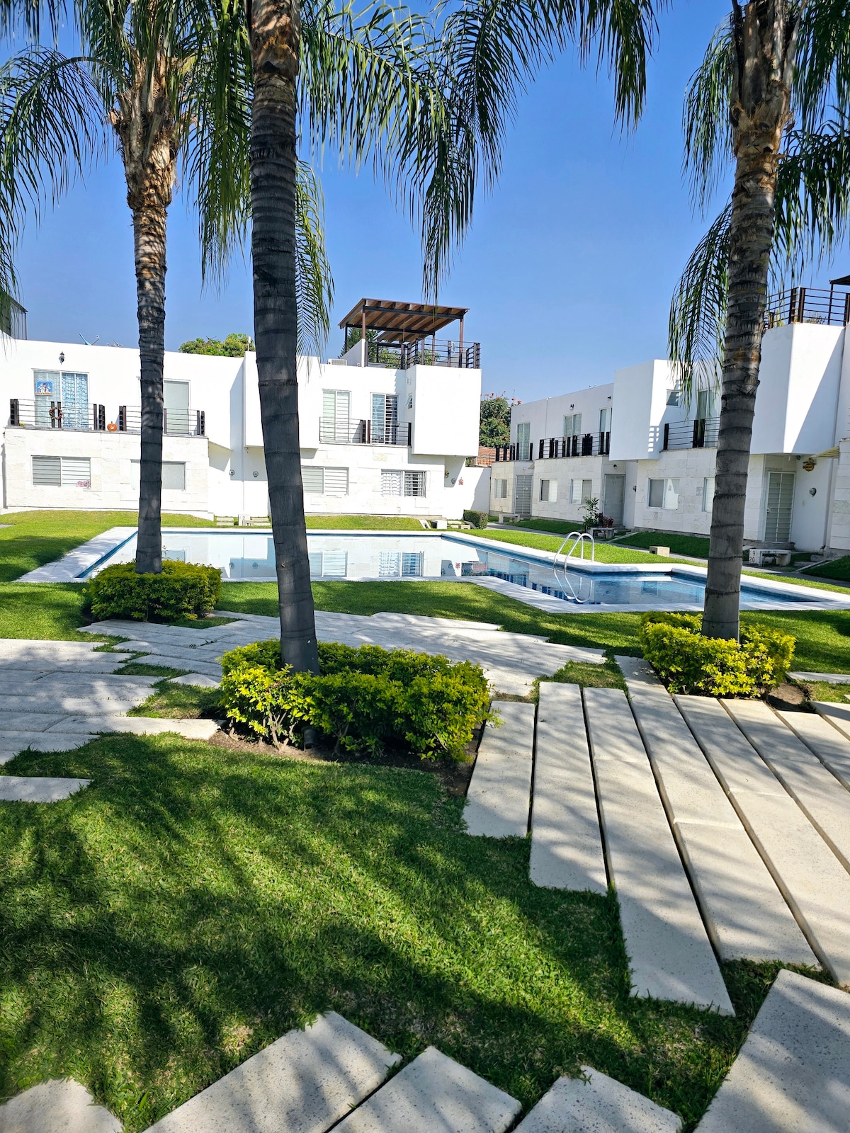 Hermosa casa tipo LOFT en Oaxtepec, a tan solo minutos de Six Flags Huracán H, Hotel Dorados y Lomas de Cocoyoc. Disfruta del sol, sumérgete en cualquiera de nuestras dos albercas y relájate en sus amplias áreas verdes. Pasa un fin de semana mágico en el espacio perfecto para desconectárte de la rutina. Visita los Pueblos mágicos de Tepoztlán y Tlayacapan. Hospédate en un fraccionamiento privado, seguro y de AMBIENTE FAMILIAR. Contamos con plataformas de streaming para disfrutar tu estancia!