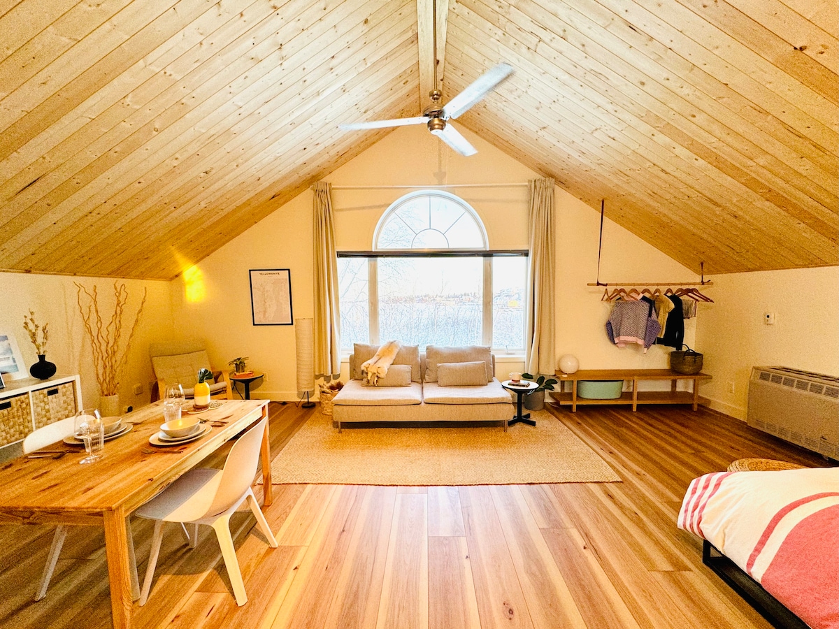 Bienvenido a nuestro apartamento único y encantador ubicado dentro de una casa hecha a mano por un ingeniero civil experto en la pintoresca ciudad de Yellowknife, Territorios del Noroeste. Situado cerca del tranquilo lago Niven, este alojamiento ofrece una mezcla perfecta de comodidad, belleza natural y fácil acceso a la fascinante naturaleza donde puedes presenciar las encantadoras luces del norte.