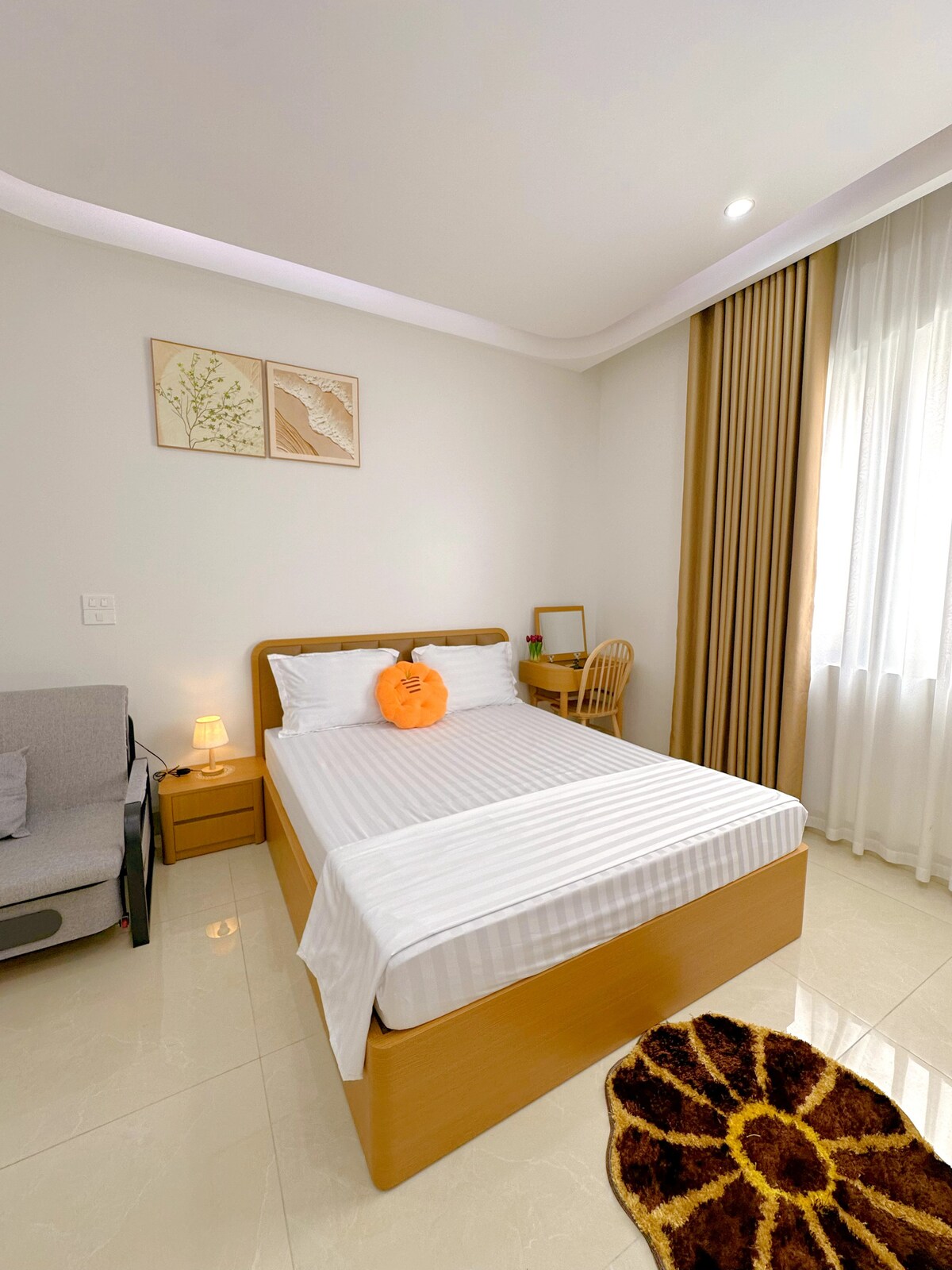 Habitación Ocean Breeze (T3) ~35m², tono verde, con baño autónomo; adecuada para 2–4 huéspedes, ideal para familias/grupos de amigos. Ubicación en Ocean Park 2, Hanói, cerca del mar, el lago y los servicios públicos. Se puede agregar una habitación adicional en el mismo piso (~10 m²) Servicios incluidos: coche privado, uñas y champú (reservado) Ocean Breeze (3F) ~35m², tema azul fresco, baño privado; ideal para 2–4 huéspedes, familias pequeñas o amigos. En Ocean Park 2, cerca de la laguna y las instalaciones. Habitación adicional opcional en el mismo piso (aprox. 10 m²) Complementos: auto privado, lavado de uñas y cabello (reserva previa)