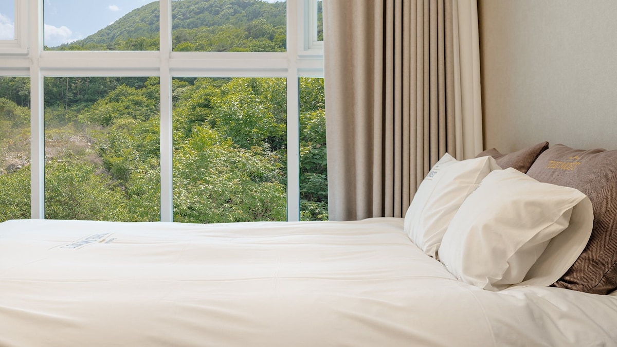 This is a space where families can stay while staying in Andong. The interior is designed to prevent damage using natural wood and single seating. For your comfort, there is a spacious living room and two bathrooms. There are 2 single bedrooms and an additional bedroom with duvets and blankets. A microwave, mini-fridge, two wind-free air conditioners with air purifiers, a 75-inch 4K TV, and Wi-Fi are provided. A spacious annex, separated by natural stone, houses a dining area and tea room.