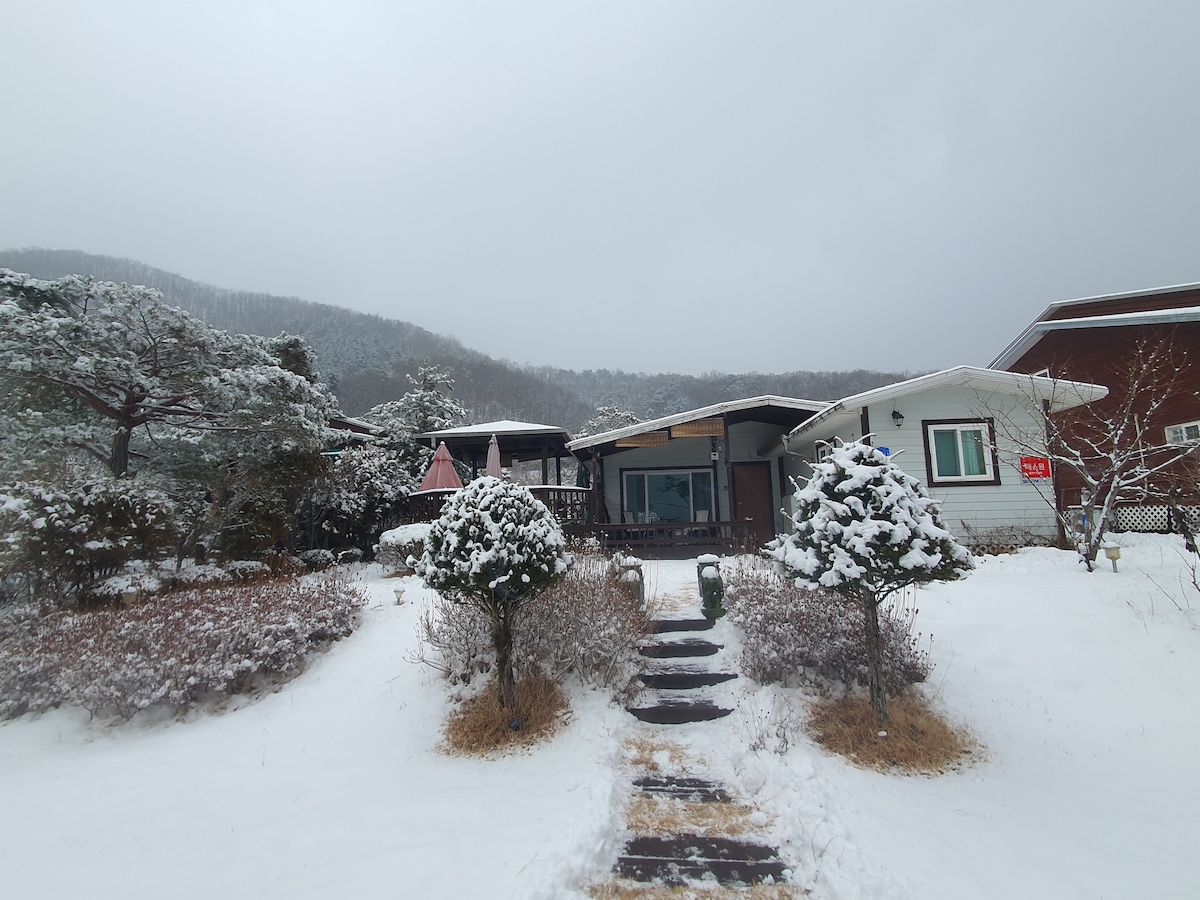 Es un lugar donde puedes relajarte por un momento y sanar mientras miras las montañas y los bosques. A 1 minuto a pie hay un sendero, un arroyo y un río. En verano, es un lugar donde se puede disfrutar de los juegos de agua en un arroyo fresco. -Naver, Instagram Pingkun Pension ♥️ Para consultas, llame al 010-3374-9822 -Hay rafting, camping, senderismo, valles, ríos, salmones, tiburones de acorazado, observatorio, sala de degustación de vinos, restaurantes, etc. cerca de la propiedad. - Tarifa de uso de barbacoa: 20 000 wones -No se aplican políticas de reembolso especiales debido al COVID-19, así que consulte la política de reembolso de Airbnb antes de reservar. - Puede almacenar su equipaje antes de la llegada. -No se admiten mascotas. -Evite actividades que puedan ser ruidosas, como fuegos artificiales o micrófonos de karaoke. -Otras precauciones No fumar en interiores -El pescado a la parrilla con mal olor y el cerdo a la parrilla solo se pueden hacer en el área de barbacoa exterior. - Después de las 10 de la noche, le agradecería que tuviera cuidado de no molestar a los vecinos.