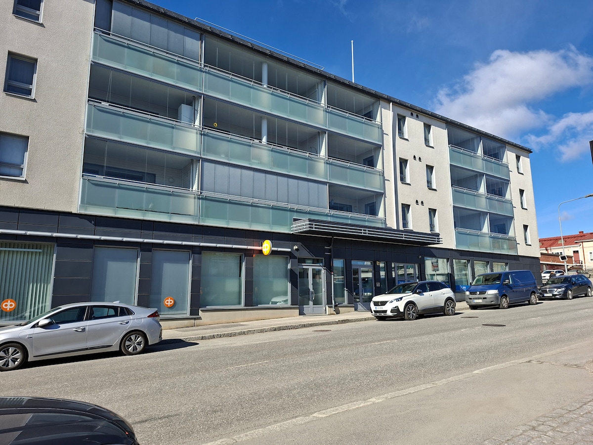 Valoisa läpitalon kaksio parvekkeella. Majoitus, jossa kaikki on valmiina. Keskustaan kävelee 10 min, juna-asemalle 7 min. Uimahalli on tien toisella puolella. Hintaan sisältyvät loppusiivous, liinavaatteet ja pyyhkeet sekä kahvi/tee. Autoilijalle on autokatospaikka. Sisäänkirjautuminen omaan tahtiin klo 15 alkaen, avain löytyy talon edessä olevasta avainboksista. Makuuhuoneessa 160 cm parivuode (2 hlö) ja olohuoneessa 140 cm vuodesohva petauspatjalla (1–2 hlö). Asunto sopii 1–4 hengelle.
