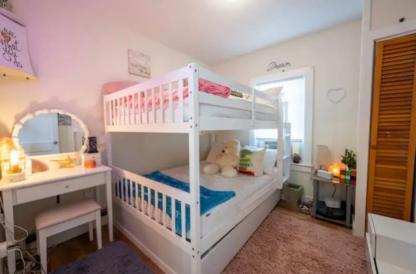 Este hermoso y acogedor apartamento fue renovado por nuestras propias manos, con eficiencia energética y artesanía en mente. El espacio es una cocina/sala de estar abierta con 2 dormitorios. Las vigas recuperadas y la madera vieja se mezclan con colores divertidos y una hermosa luz solar completa. Un exuberante jardín orgánico rodea la casa con pollos en el patio trasero. Ubicado en una calle tranquila, a poca distancia de la panadería Willard Beach y Scratch, a 5 minutos de Portland Headlight y a 10 minutos del puerto antiguo de Portland.