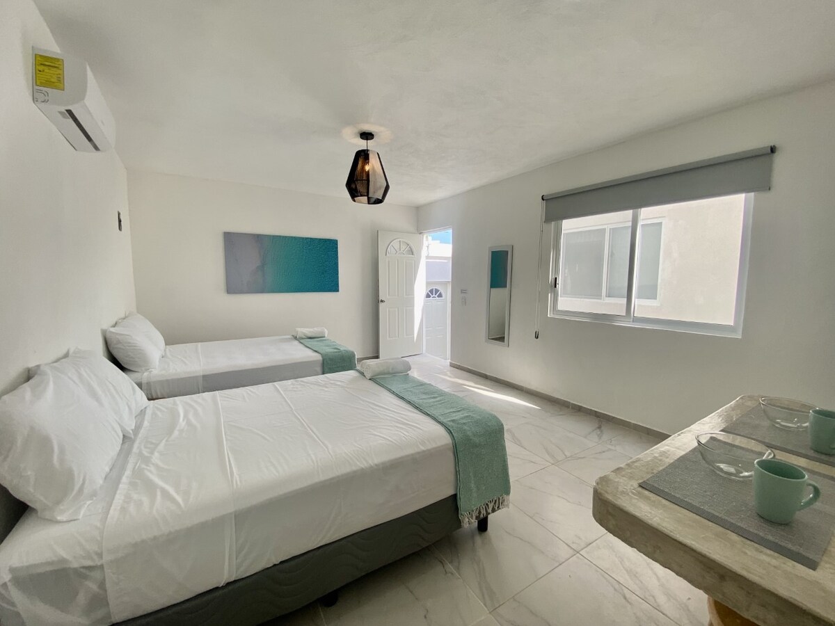 Habitación perfecta para una familia, con baño privado, cocineta, Aire Acondicionado y wifi. Disfruta del fácil acceso a las más bellas playas, tiendas y restaurantes populares desde este encantador lugar para hospedarte.