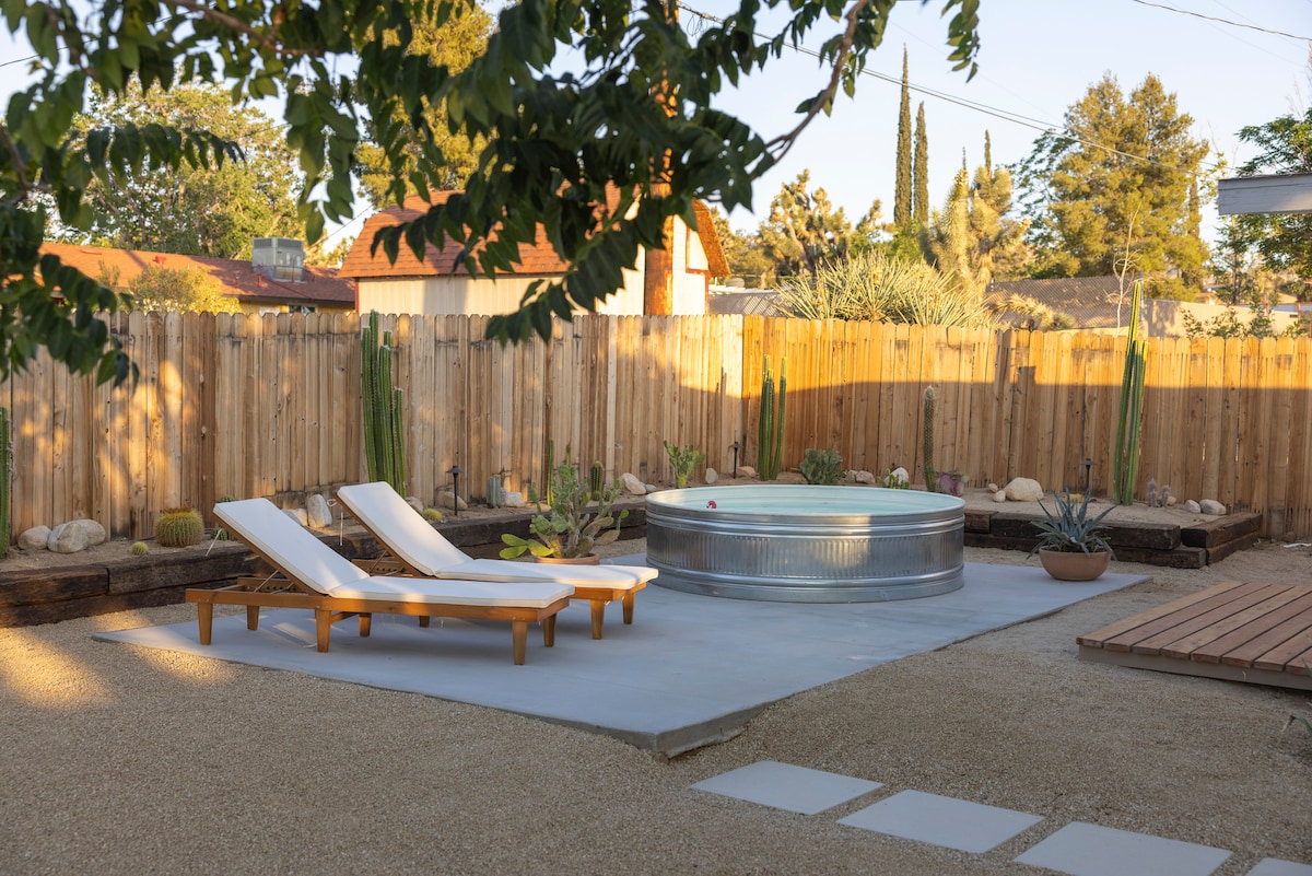 Tap into "chill" at @Mojave_Lofi, a private, serene, desert retreat just 25 mins from Joshua Tree National Park. - XL Hot Tub & Above-Ground Swimming Pool (seasonal) - Dog Friendly w/ bowls & waste bags provided - 2.5 acre lot with fully fenced yard - Cal-King Beds - Grill & Fire Pit - Fully Stocked Kitchen - Game Room with Pool & Ping Pong - Record Collection - Al Fresco Dining - Telescope for stargazing - Washer & Dryer - La Copine, the best restaurant in the high desert, is just steps away!