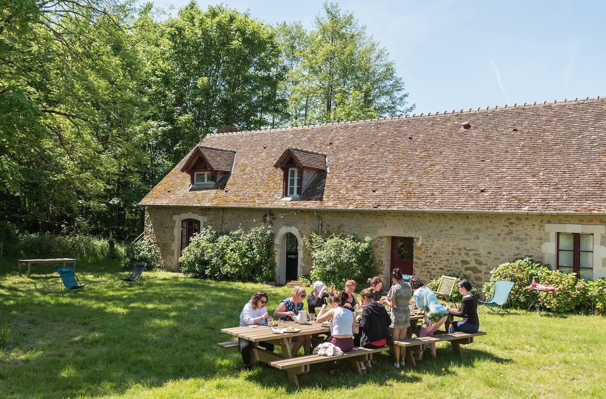 Idéal pour l’hiver, ce gîte de 8 chambres sur deux niveaux est une invitation à se retrouver. Son immense salon-cuisine, ouvert sur la rivière et le jardin, devient le cœur de la maison : repas partagés, longues discussions, chaleur et convivialité. Entouré par l’eau et la nature du parc du Château de Chéronne, le lieu offre calme, déconnexion et confort optimal pour des séjours ressourçants en toute saison.