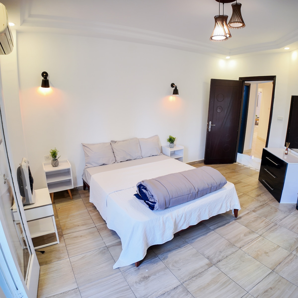 Experimenta la elegancia en este estudio bellamente renovado, situado en el segundo piso, que combina a la perfección la estética moderna con un encanto acogedor, a pesar de la ausencia de ascensor. Cuenta con grandes ventanales, aire acondicionado, WiFi de alta velocidad, cocina totalmente equipada, dos camas individuales convertibles en una cama tamaño king y un baño privado con calentador de agua. Tené en cuenta que, de acuerdo con la Ley de Turismo de Egipto, solo las PAREJAS egipcias/árabes deben mostrar un certificado de matrimonio. No se permiten visitantes.