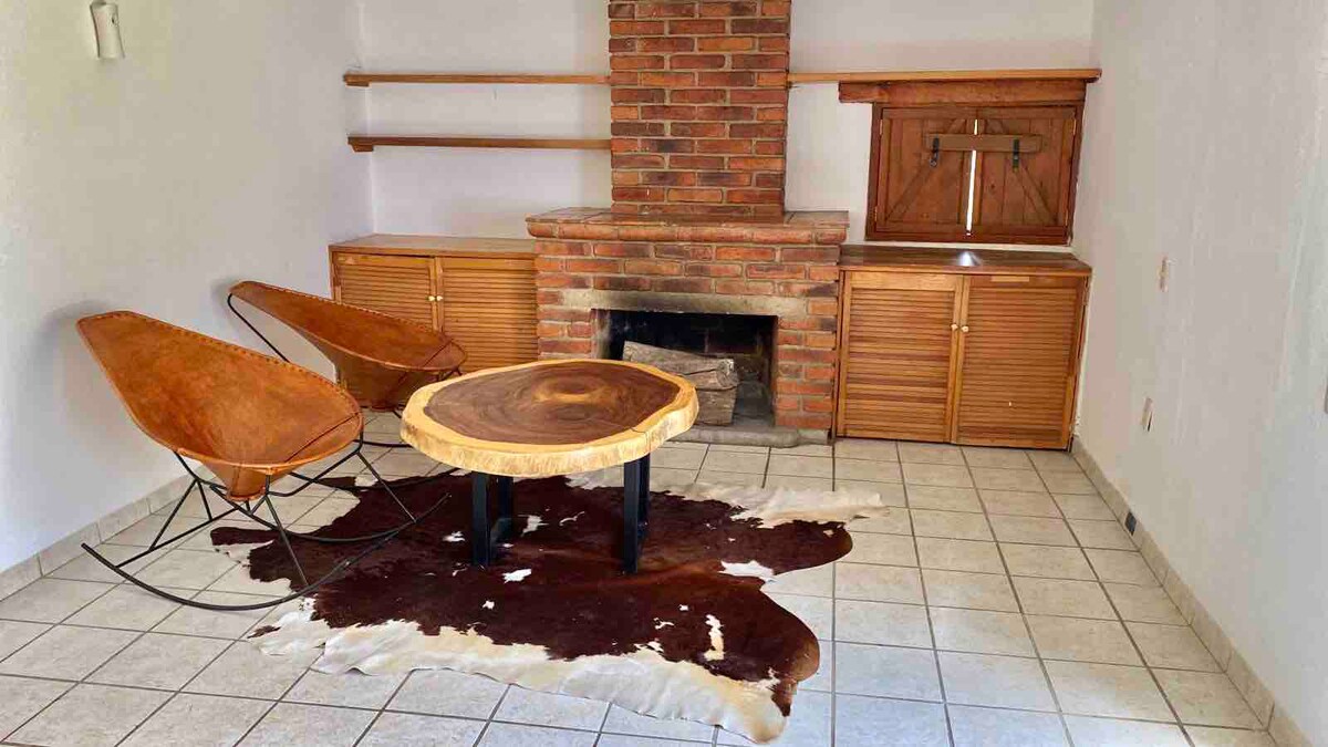 Casa tipo Hacienda Con chimenea, un área de jardín muy amplio, donde sentiras La Paz de de la naturaleza, y podrás disfrutar de tardes con tus hijos y o carne asada con amigos y los niños pueden jugar y correr También contamos con alberca de 5 x4 tibia en meses cálidos fría en invierno WiFi, balcón con hamaca para disfrutar la vista Ideal para desconectarte de la ciudad. si estás cansado o estresado es el lugar indicado Estamos cerca de la barranca y zoológico de Guadalajara
